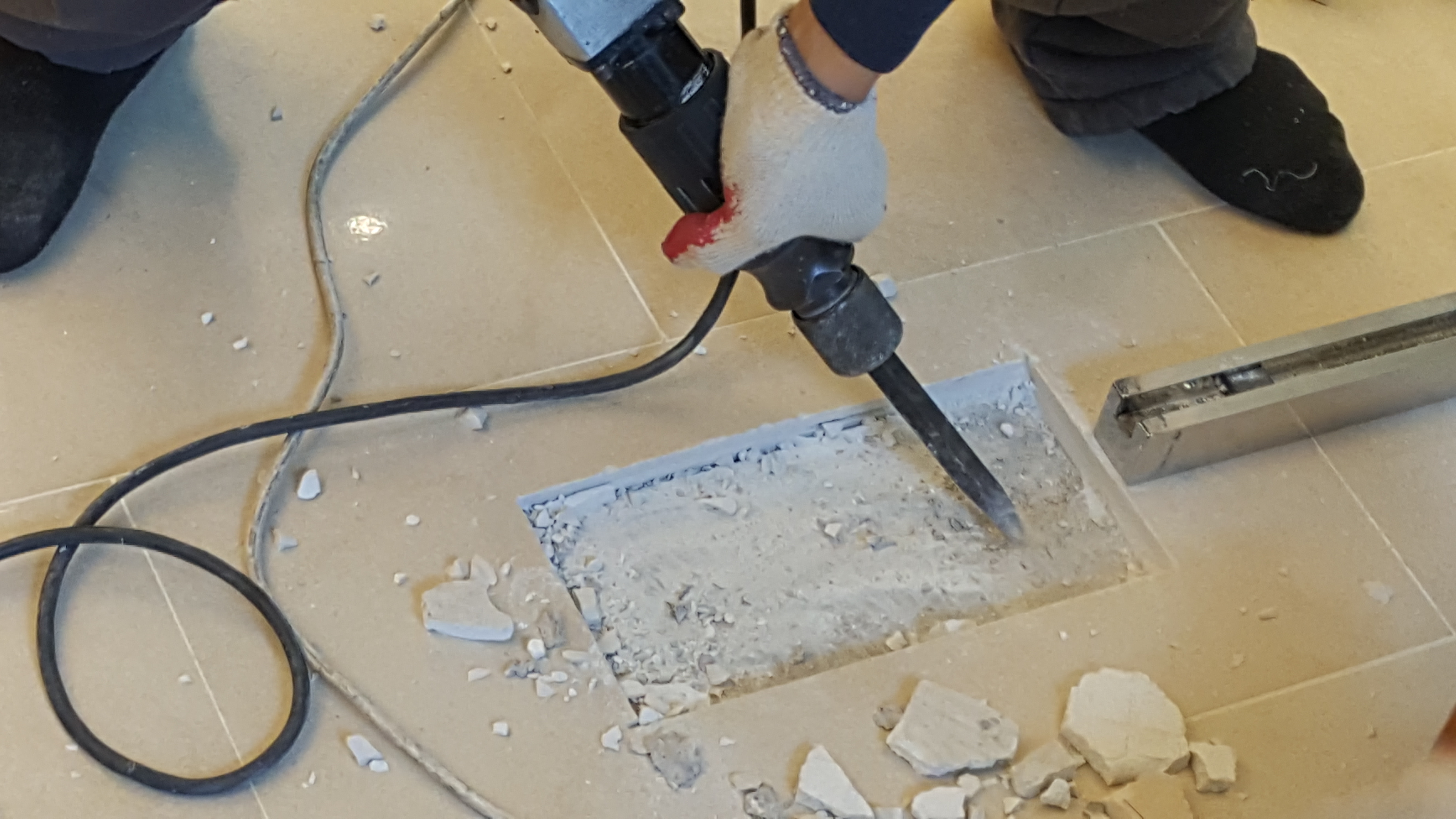 절단 후 바닥을 파내는 중입니다.