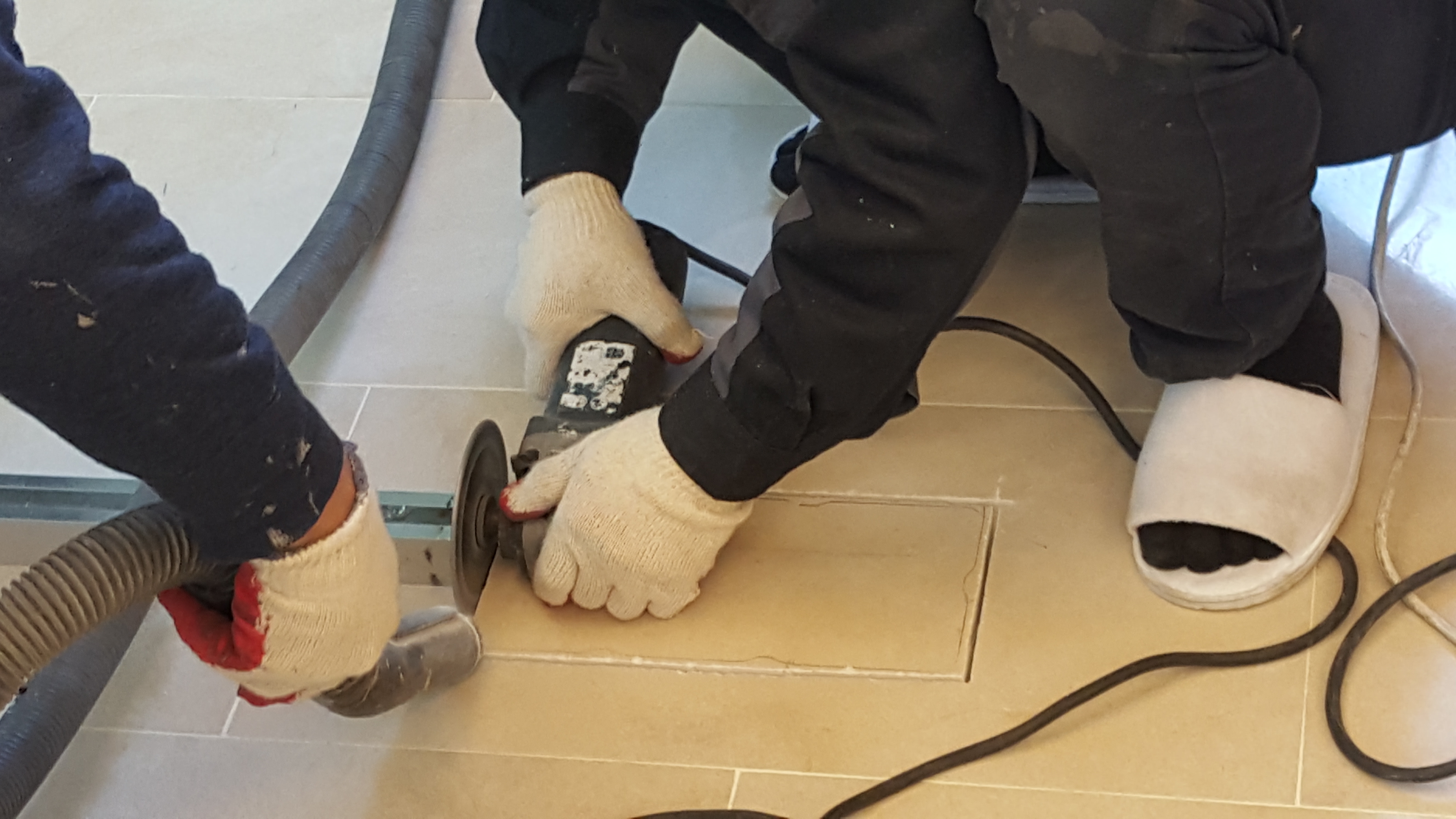 강화도어 힌지를 묻기위해 절단 작업중입니다.
