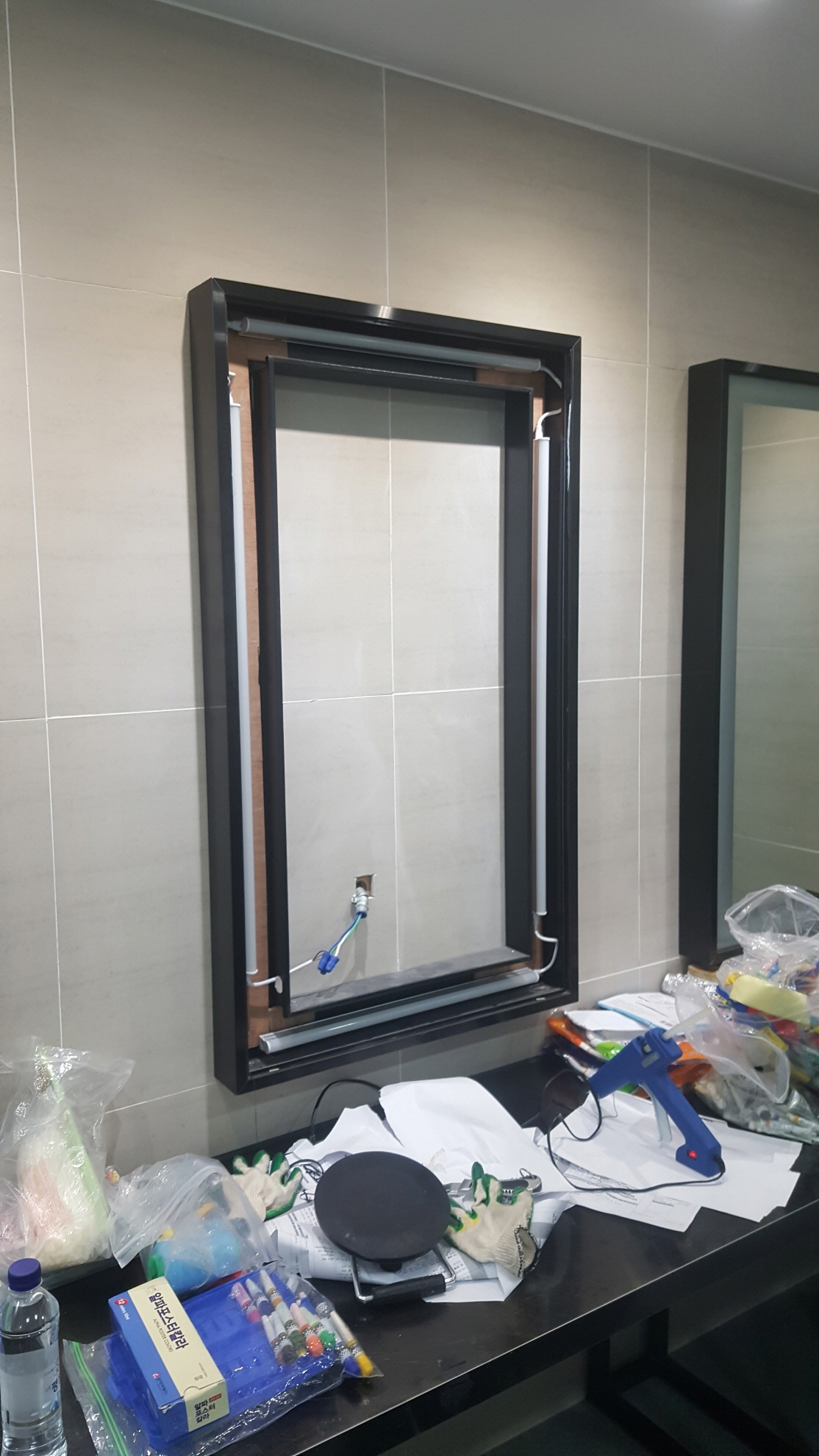 KBS 방송국 분장실에 거울이 파손되었다고 하셔서 교체해드렸습니다.