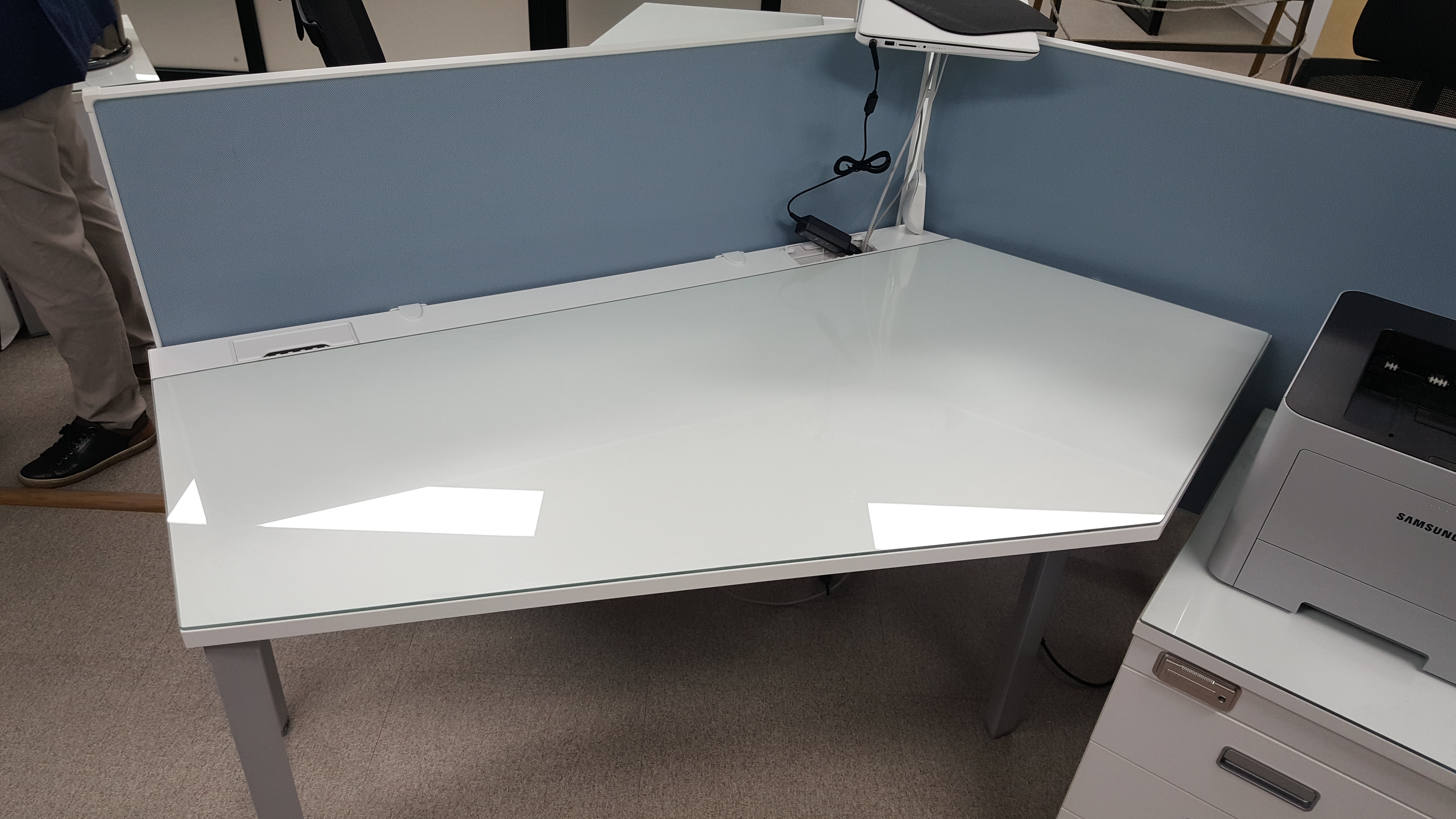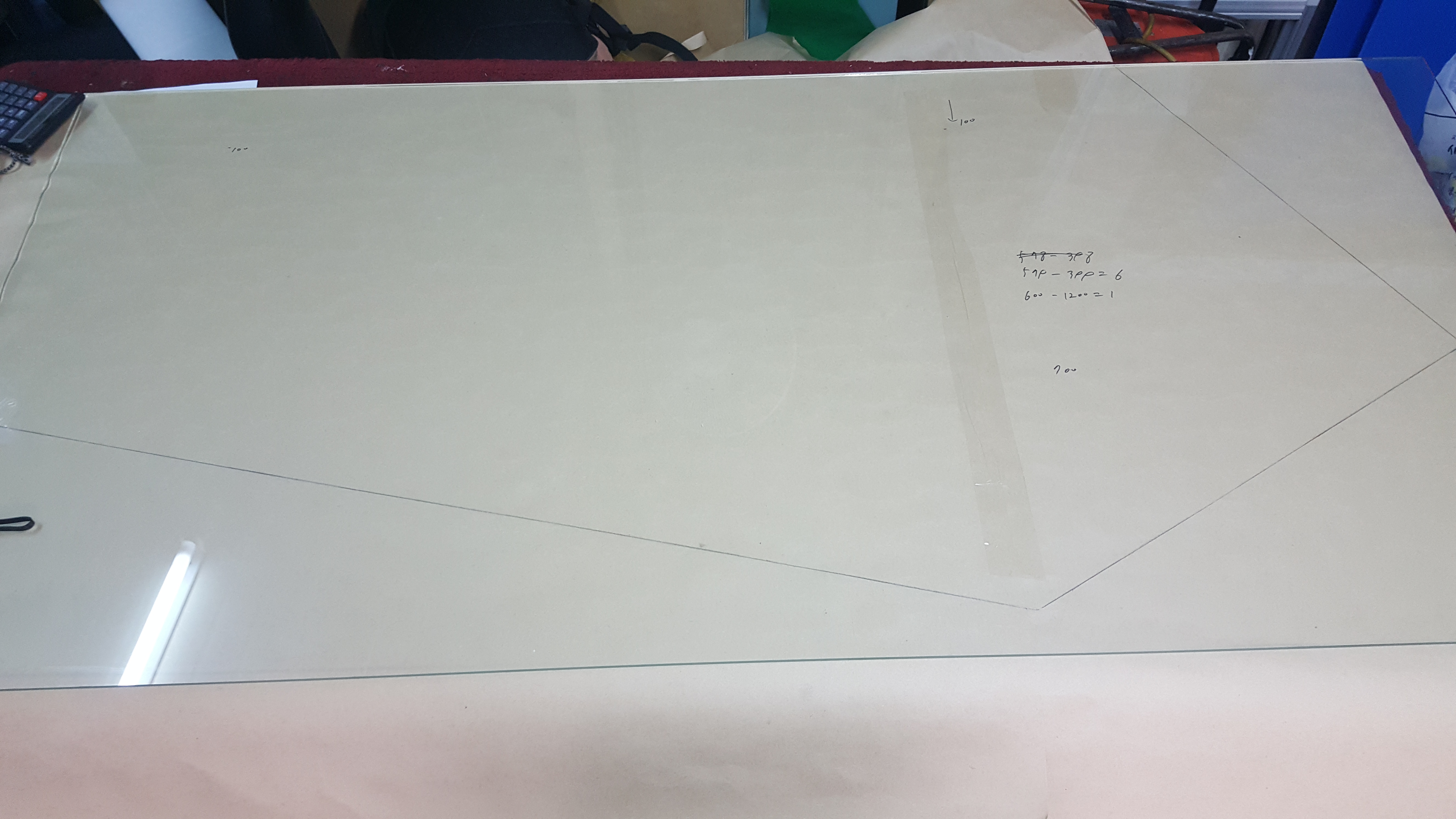 책상의 형태가 일반적이지 않아서, 종이로 본을 떠서 해야해서 번거로운 작업이었습니다.