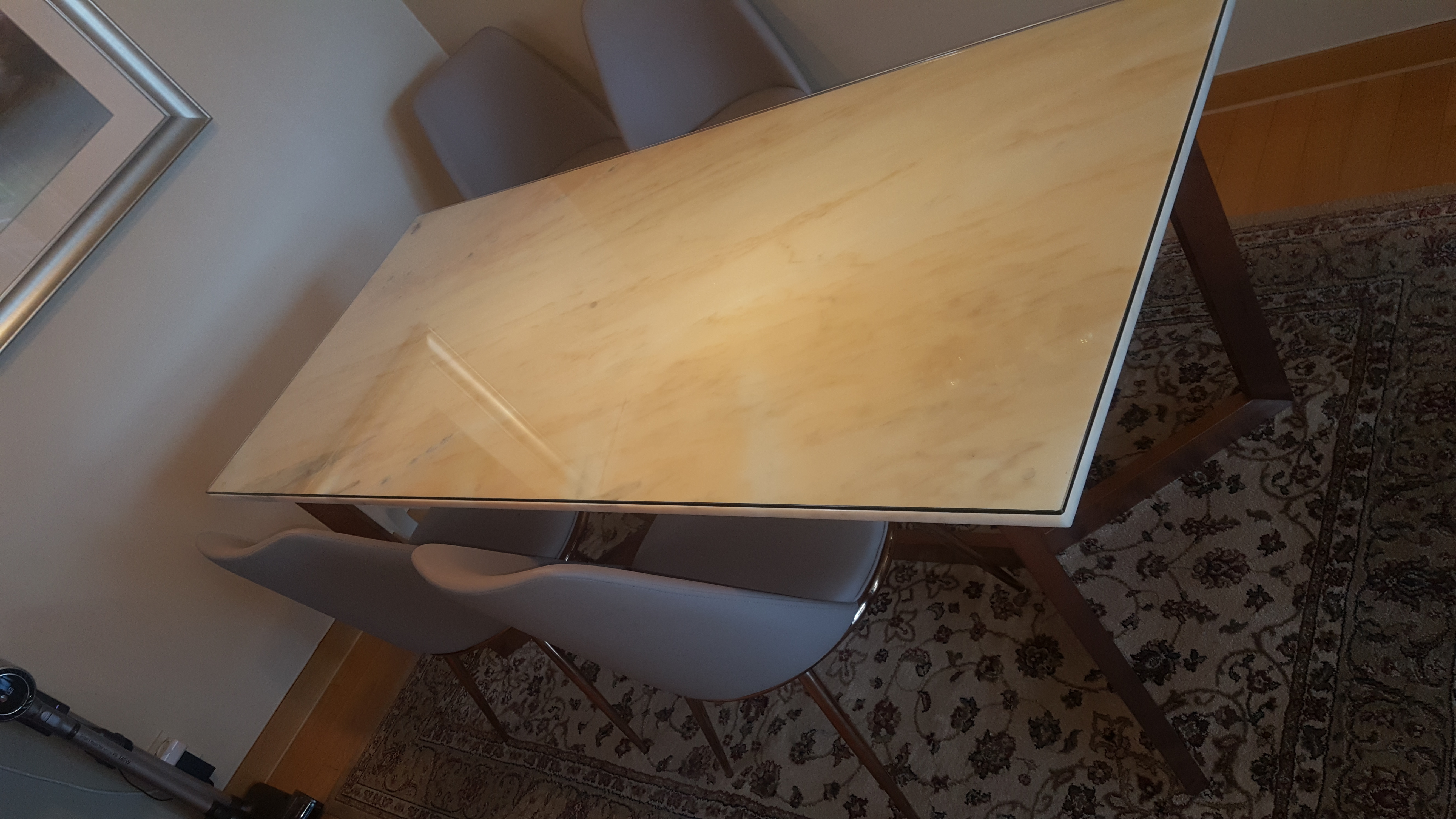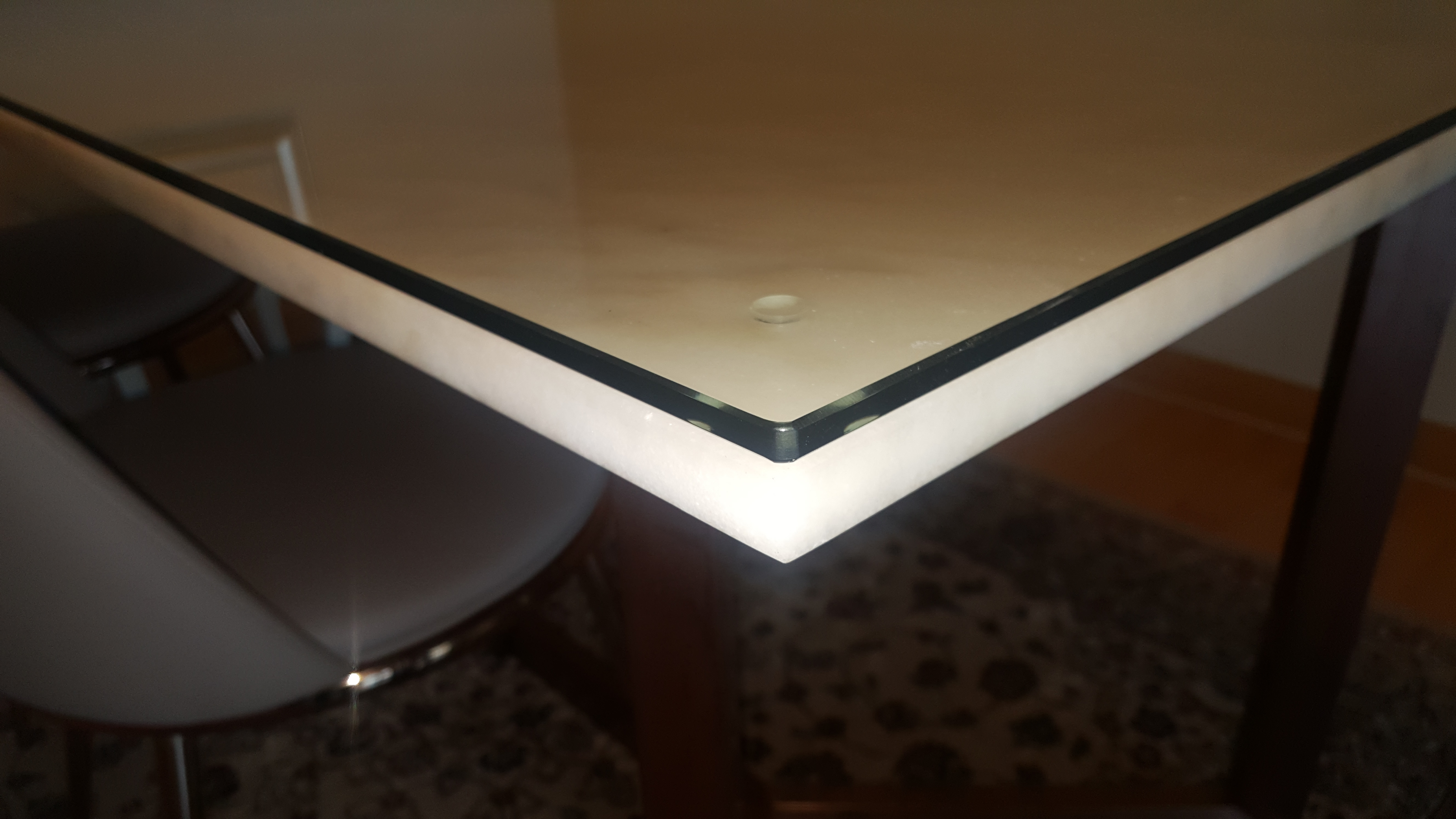 대리석 식탁위로 8T강화유리를 깔아드렸습니다.