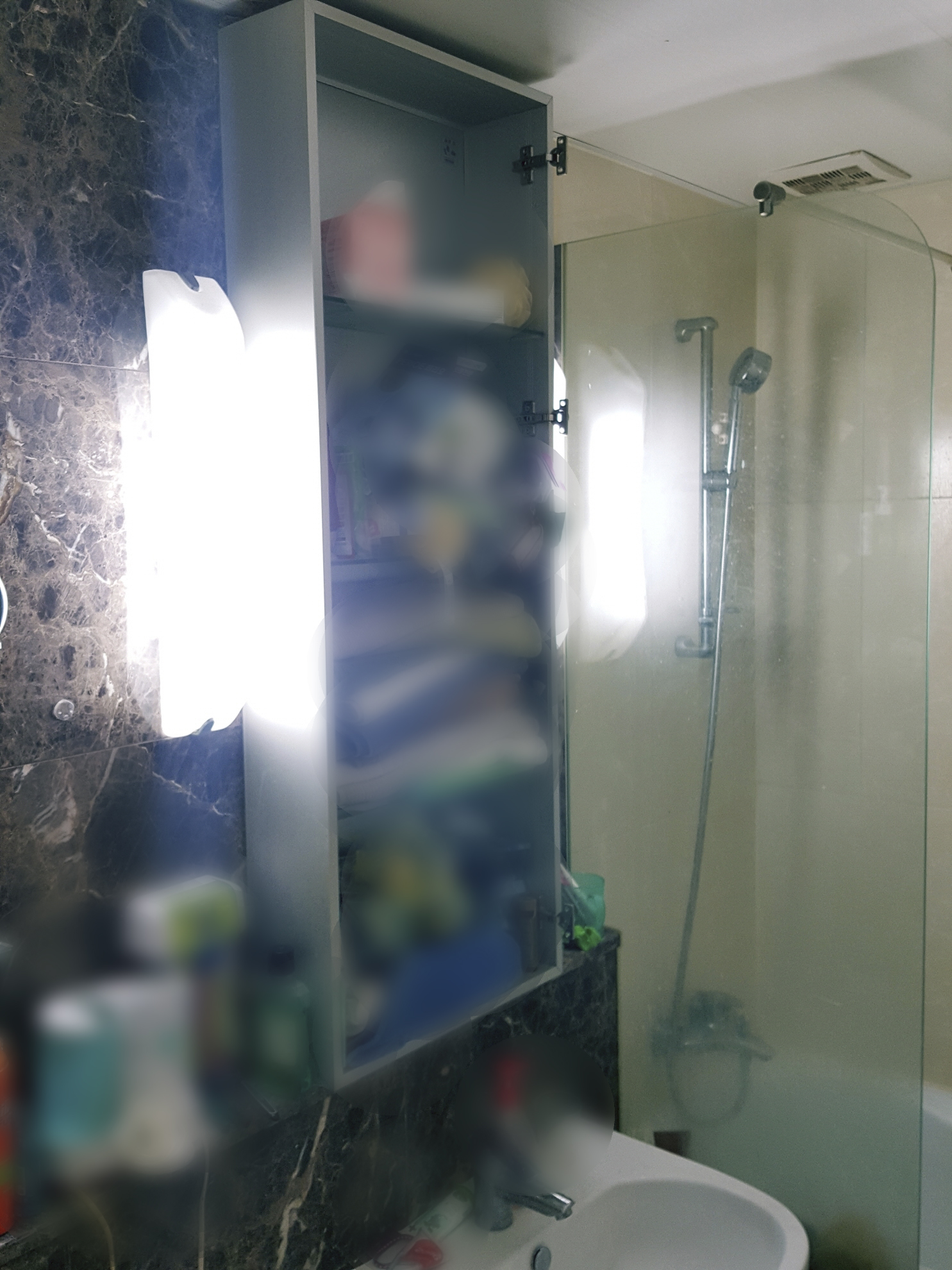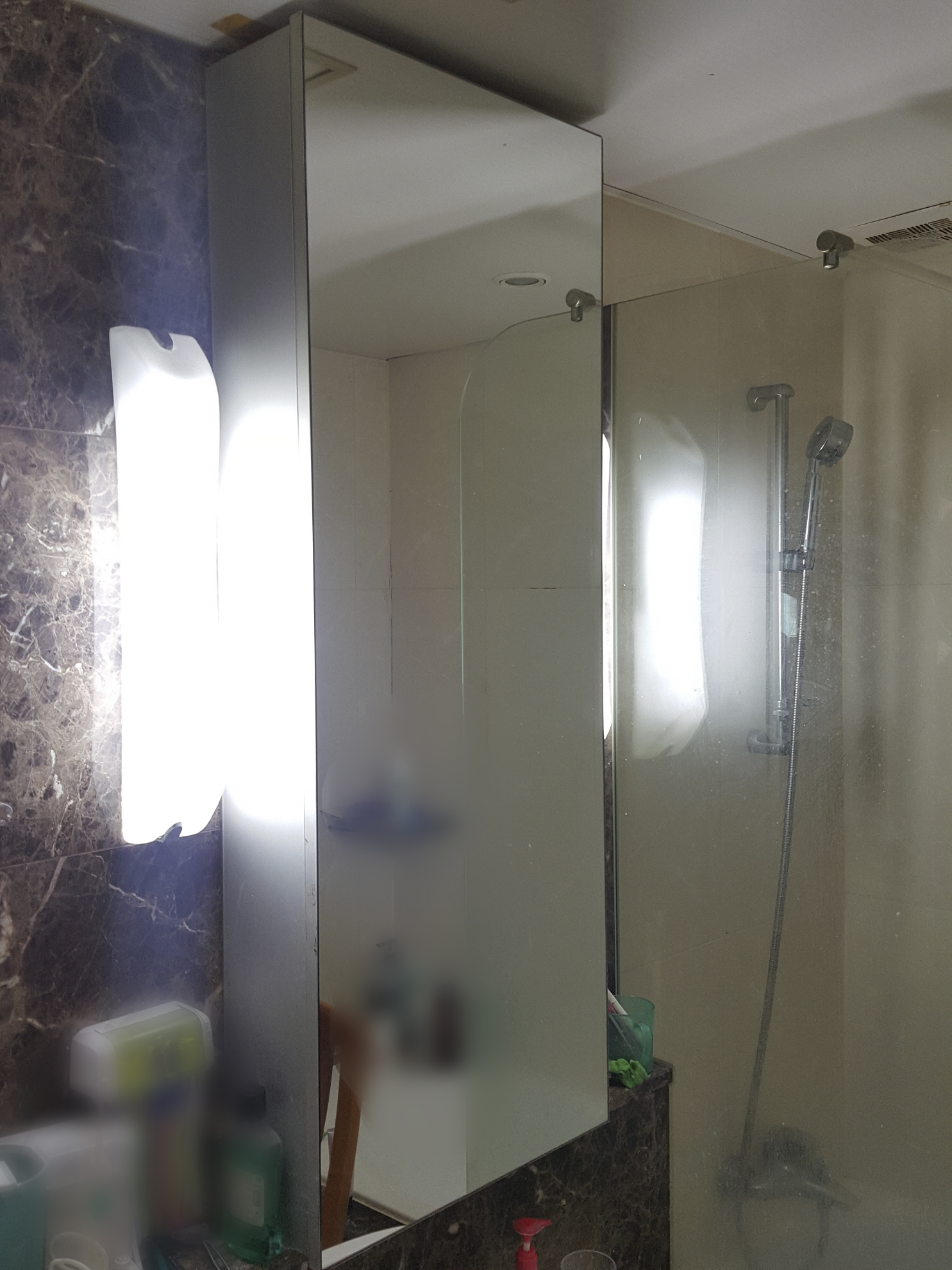 요즘 욕실장은 문에 거울이 붙어 있는 경우가 많은데요.