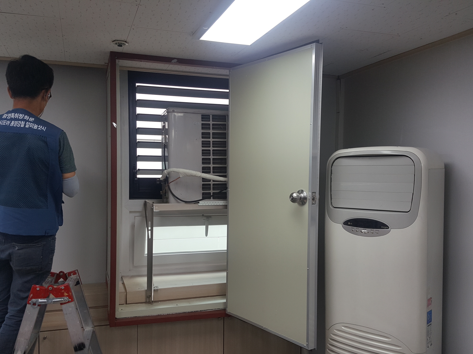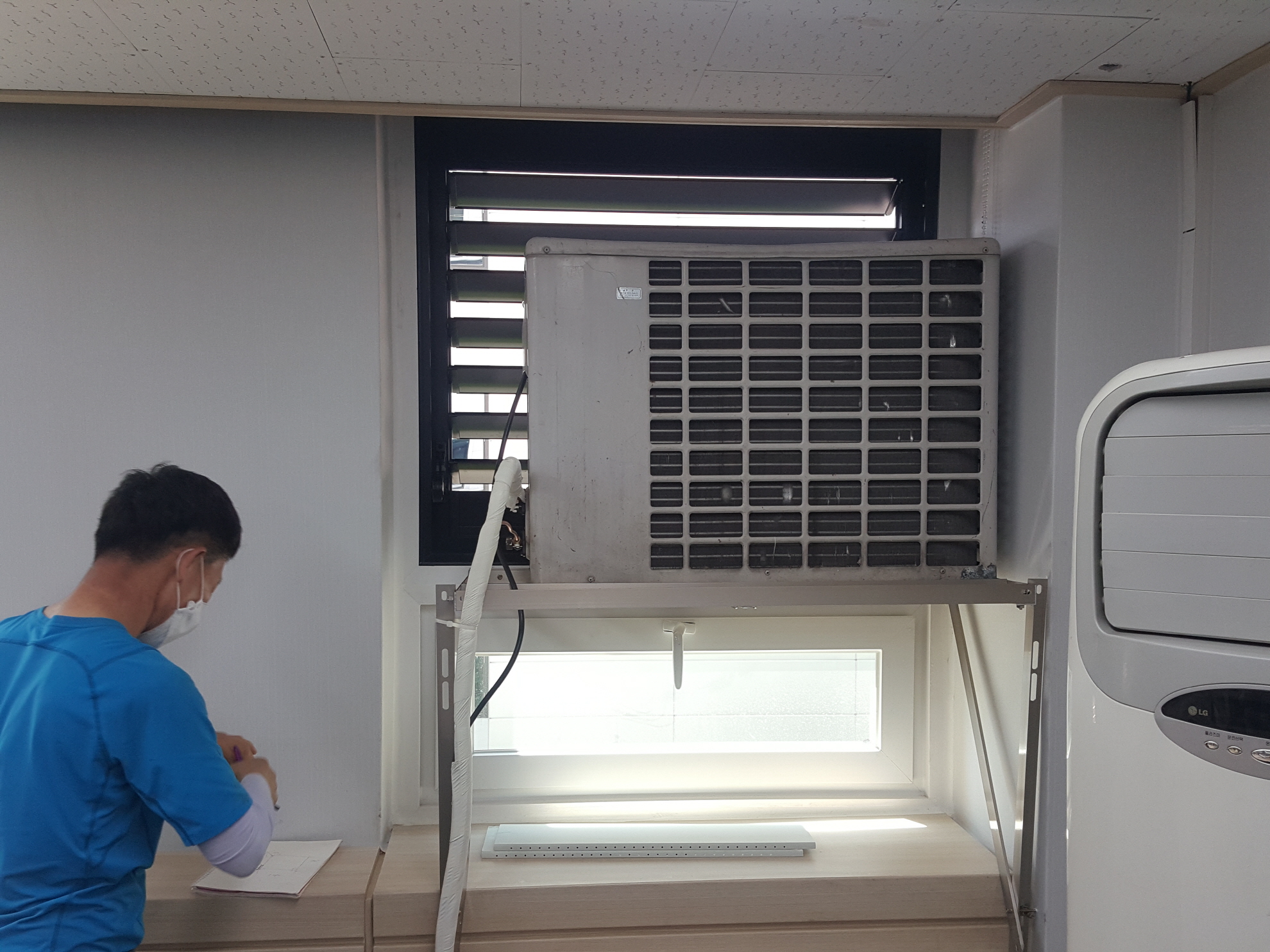 에어컨 실외기를 실내에 설치하기 위해 작업을 진행했습니다.