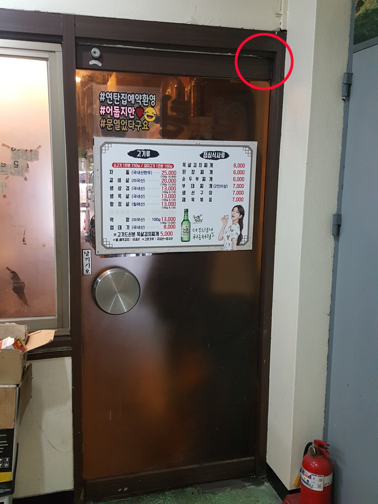 아래 사진의 붉은 원으로 표시한 것 처럼 용접을 하고 강화도어를 설치하고 마무리 했습니다.