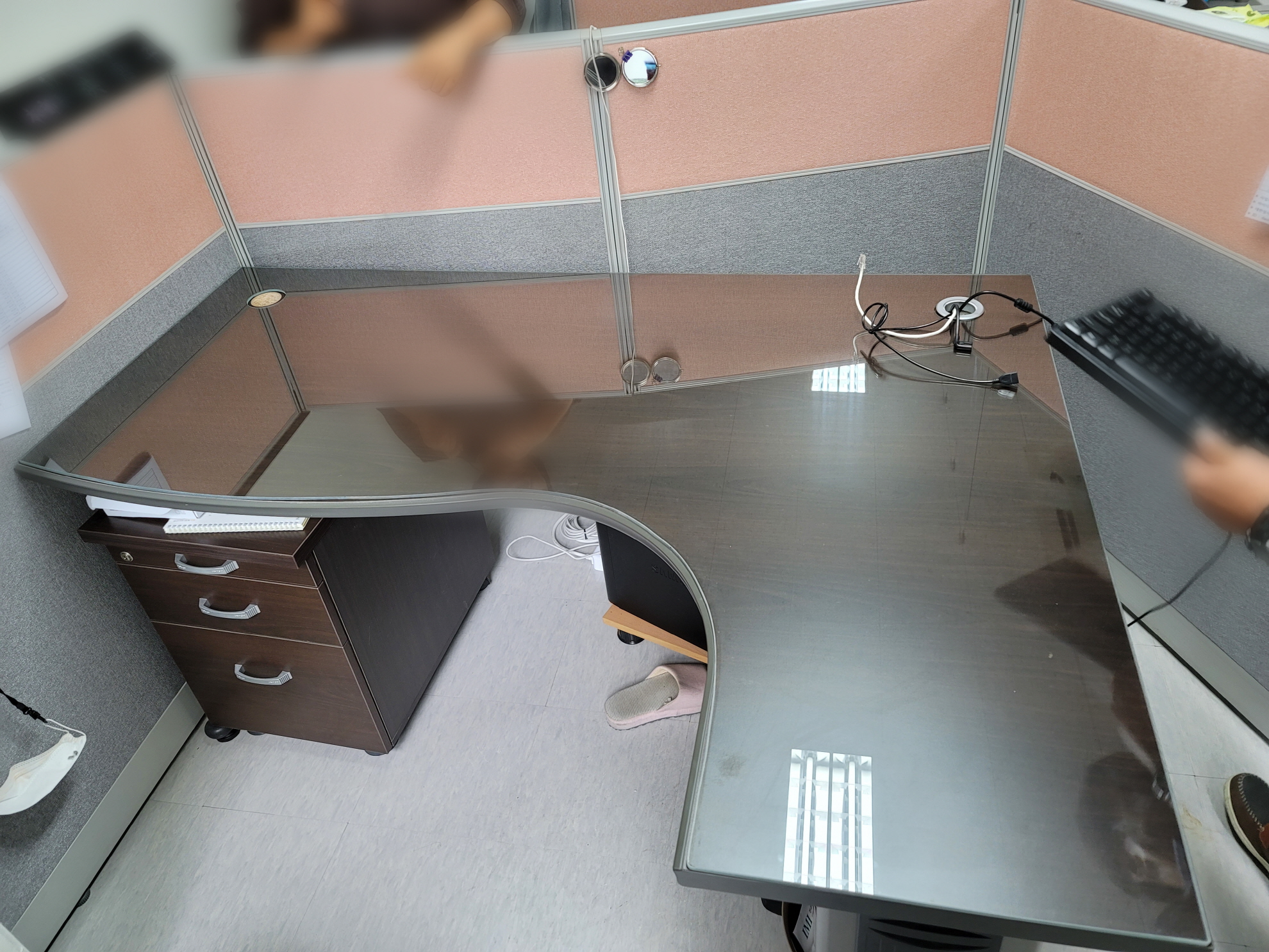 흔히 보는 사각 책상이 아니고, 흔히 L자 퍼즐책상이라고 하는 곡선형 책상입니다.
