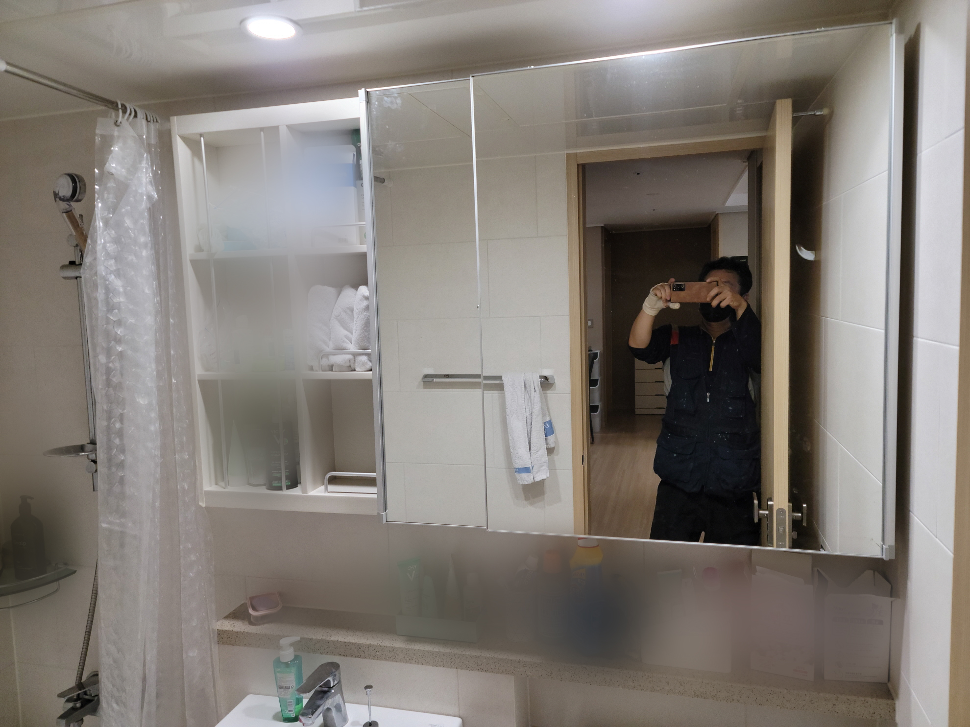 욕실장 거울을 교체해드렸습니다.