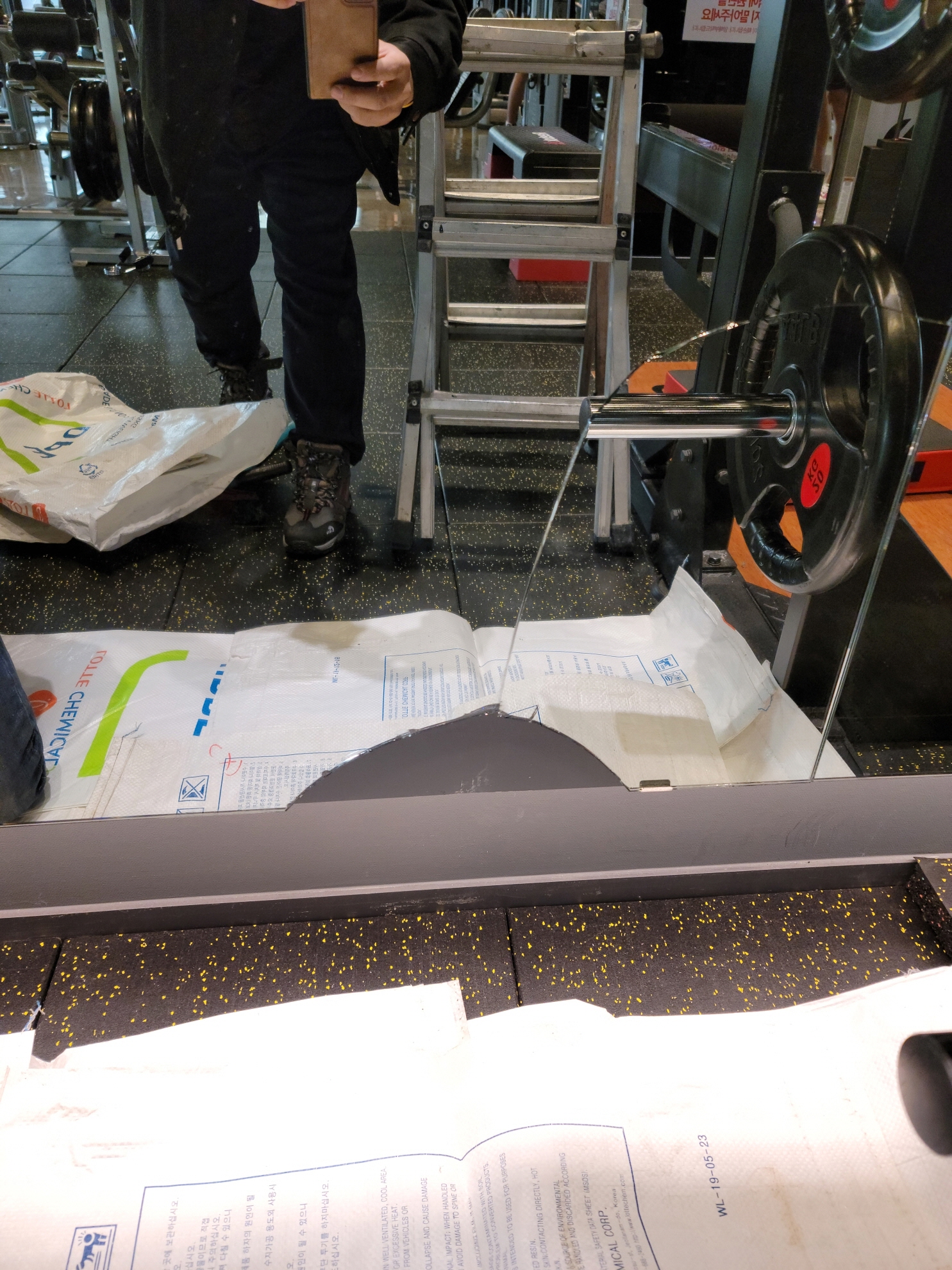 운동기구를 내려놓는 과정에서 문제가 생기신건지 거울하단이 파손되었습니다.