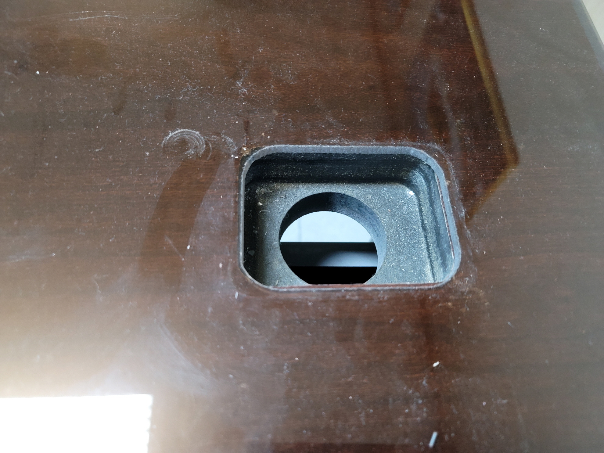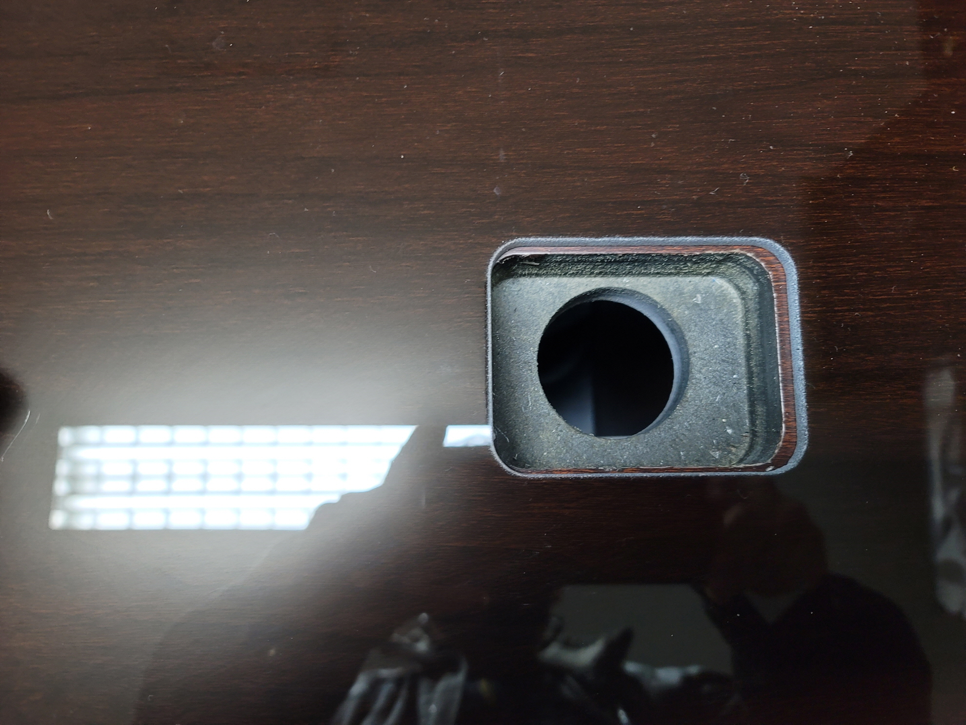 책상의 구멍보다 살짝 여유있게 워터젯가공으로 구멍을 뚫어드렸습니다.
