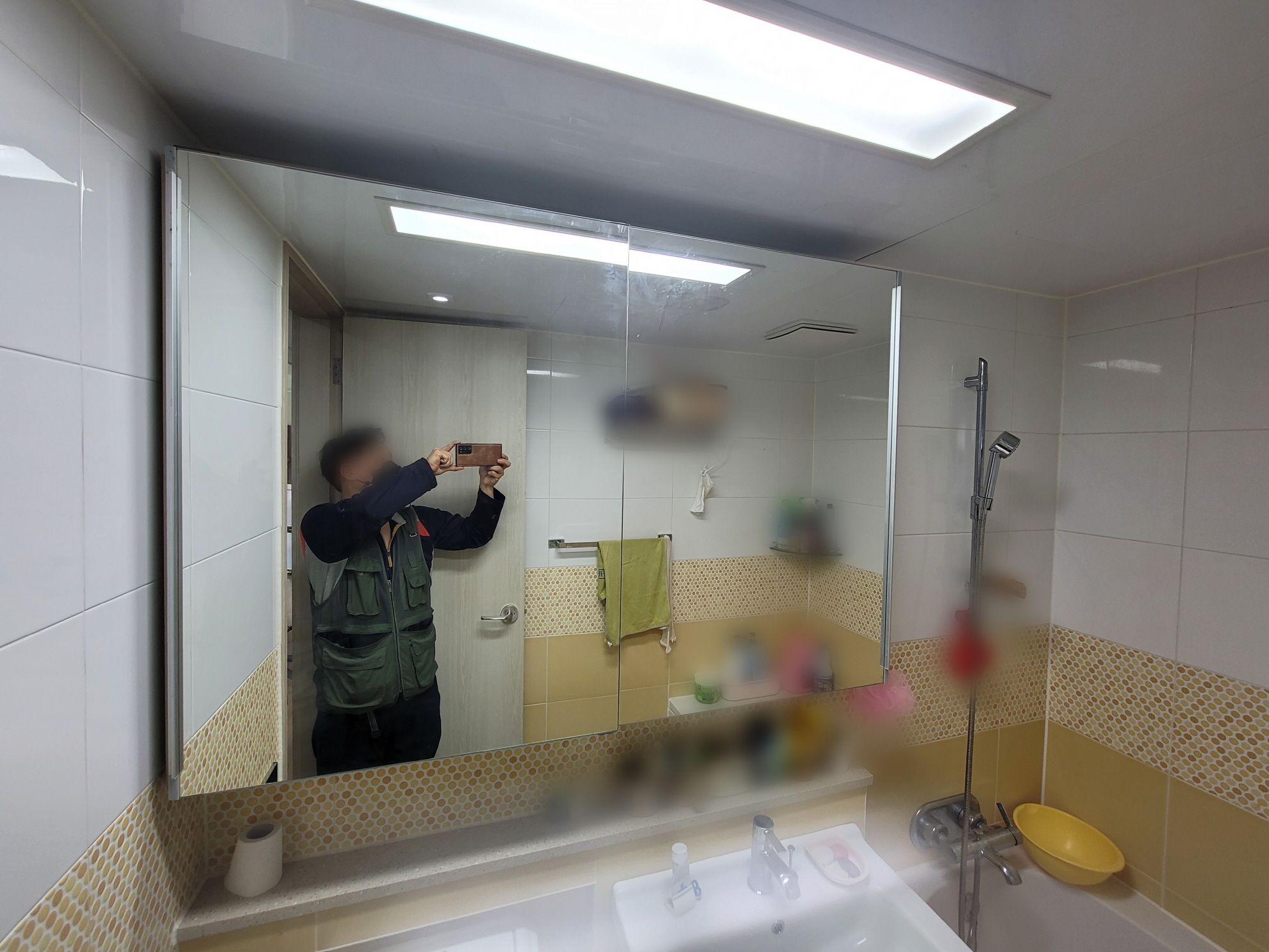 작업이 끝난 거울을 설치하기 위해 다시 방문을 해서 원래대로 설치를 해드리면 작업은 완료됩니다.