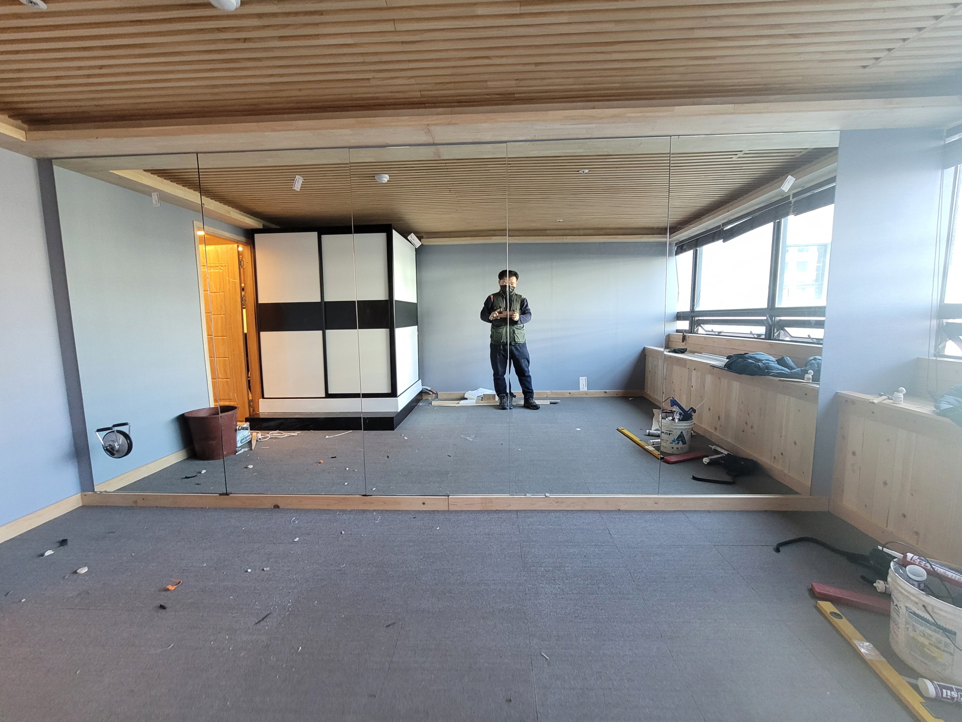 체력단련실을 만드신다고, 벽면에 거울 시공을 요청하셨습니다.