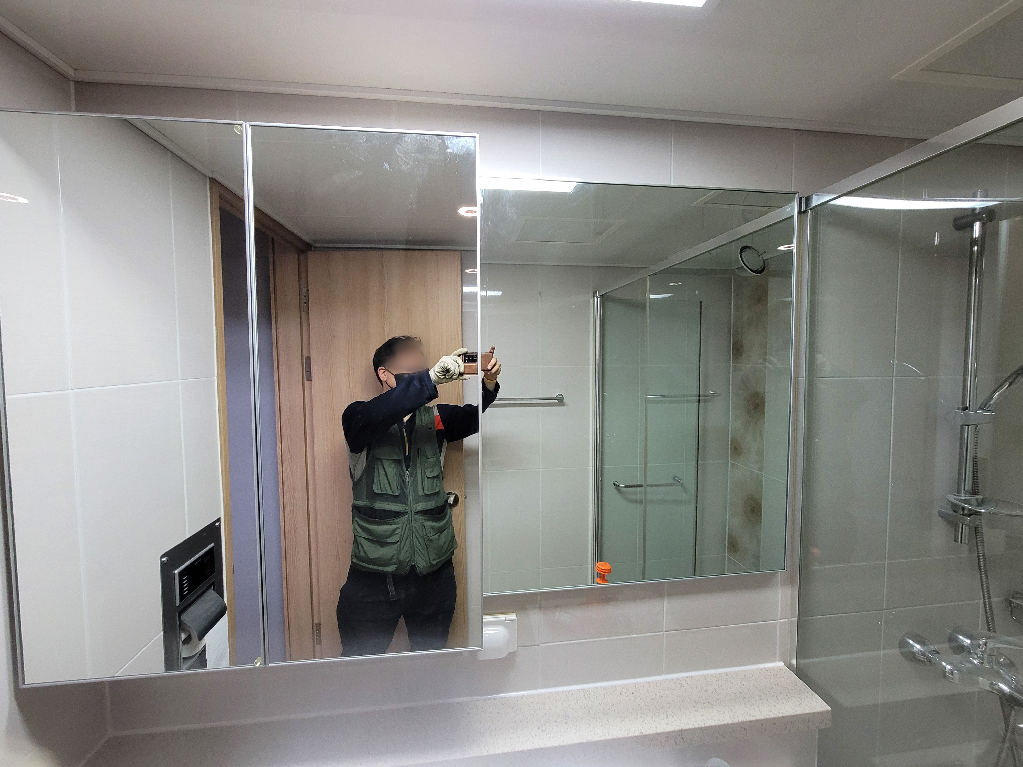도어쪽 거울은 상태가 양호한데 우측 벽거울이 변색이 되었습니다.