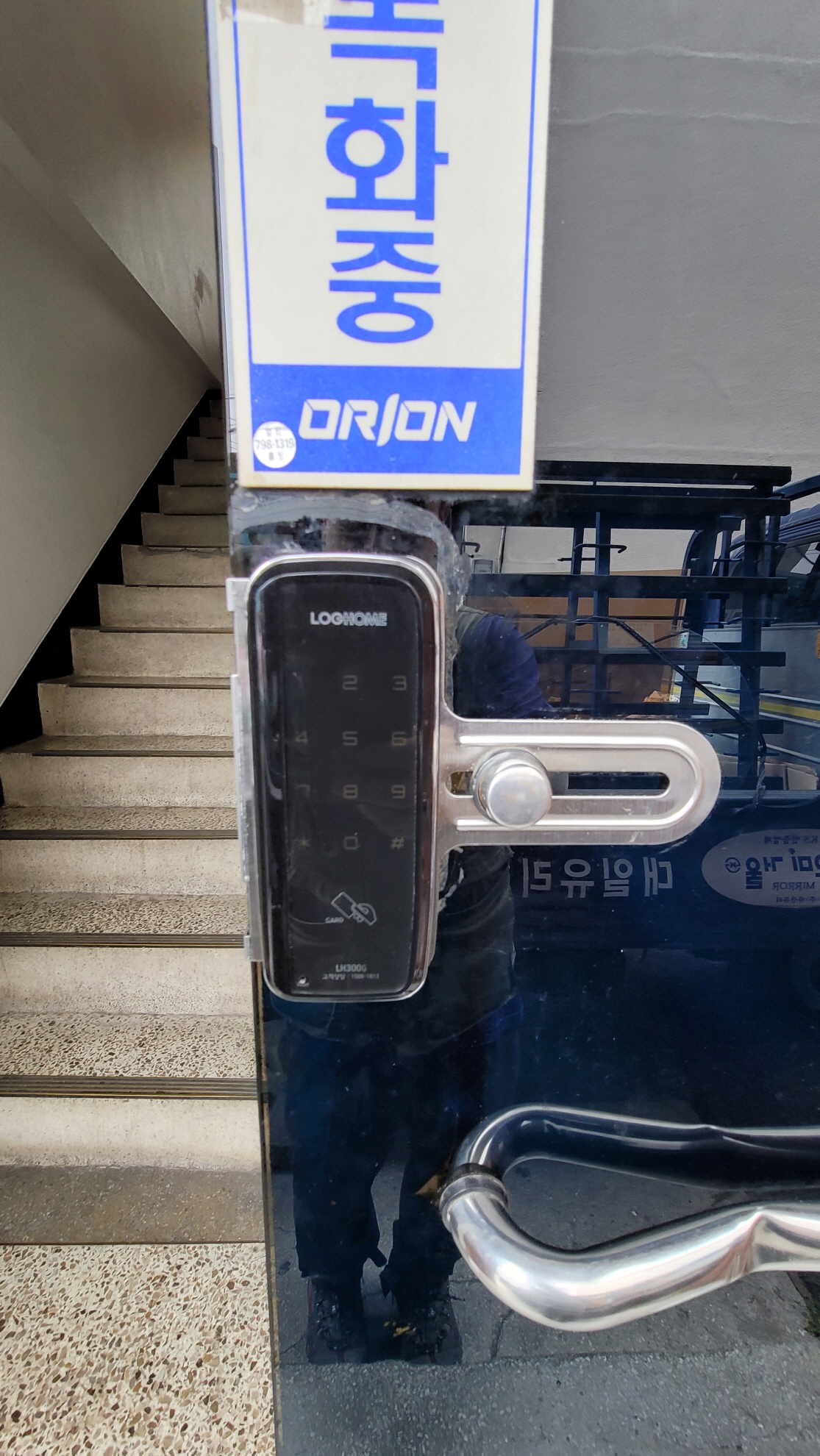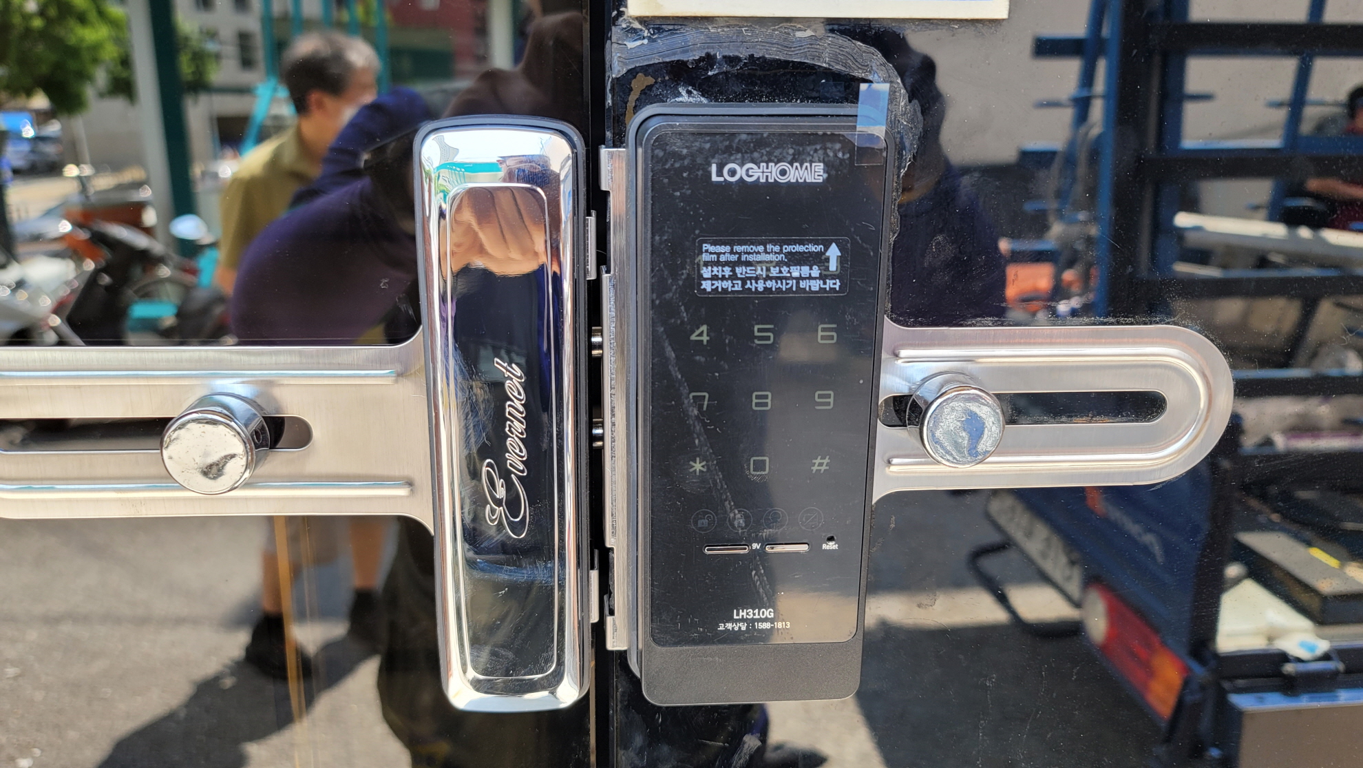 필름작업까지 마친 후, 새로운 번호키(터치식 디지털도어락)를 설치해드리면 작업이 마무리 됩니다.