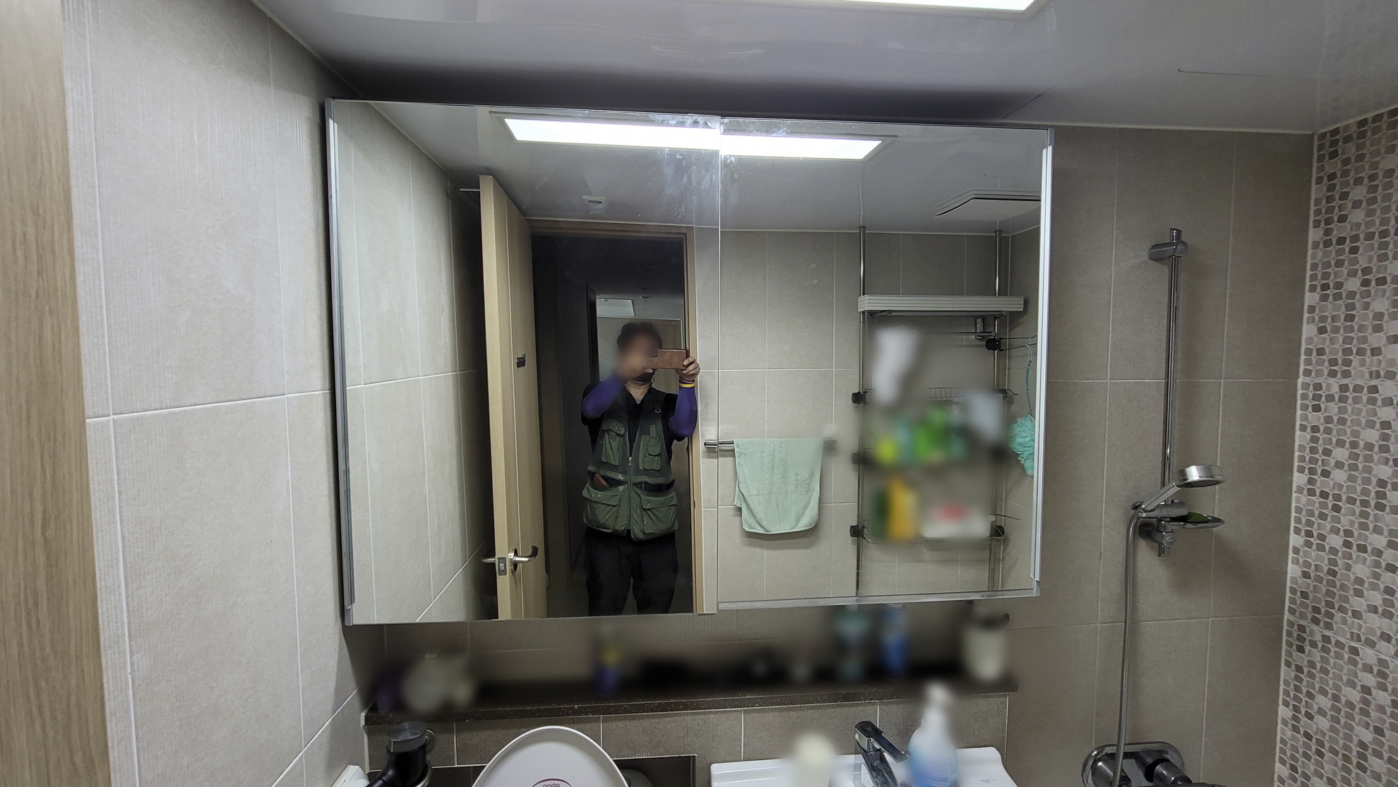 욕실슬라이드장 거울이 파손되었다고 연락을 받고, 교체를 진행했습니다.