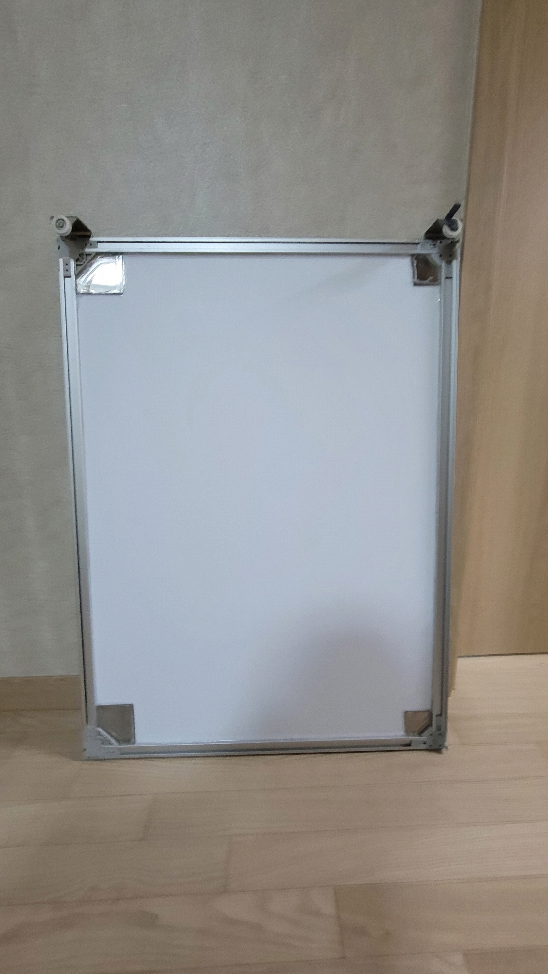 시트지를 붙인 거울을 프레임과 조립을 하고, 모서리 조인트 부분의 뒤편에 금속판을 보강했습니다.
