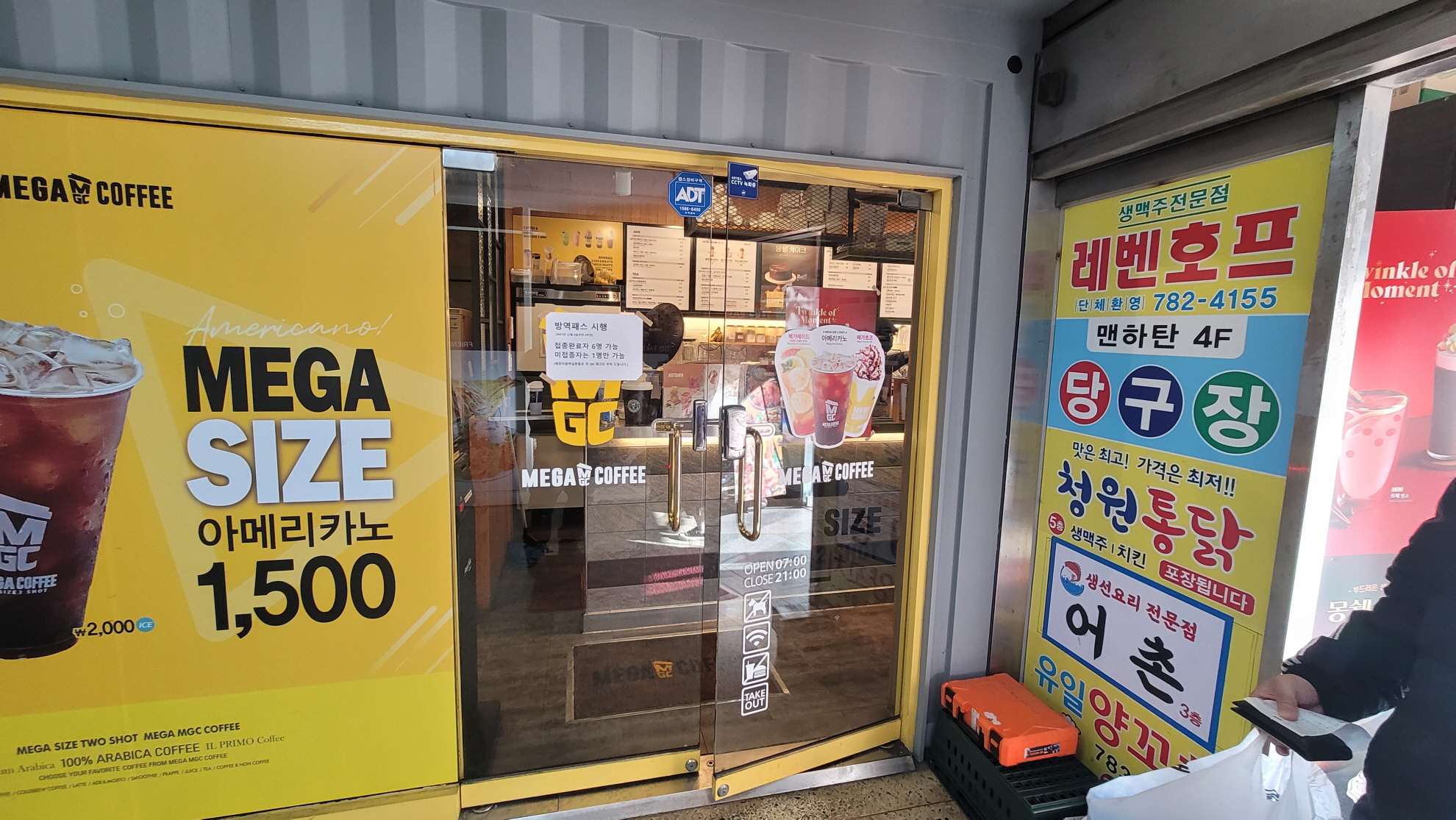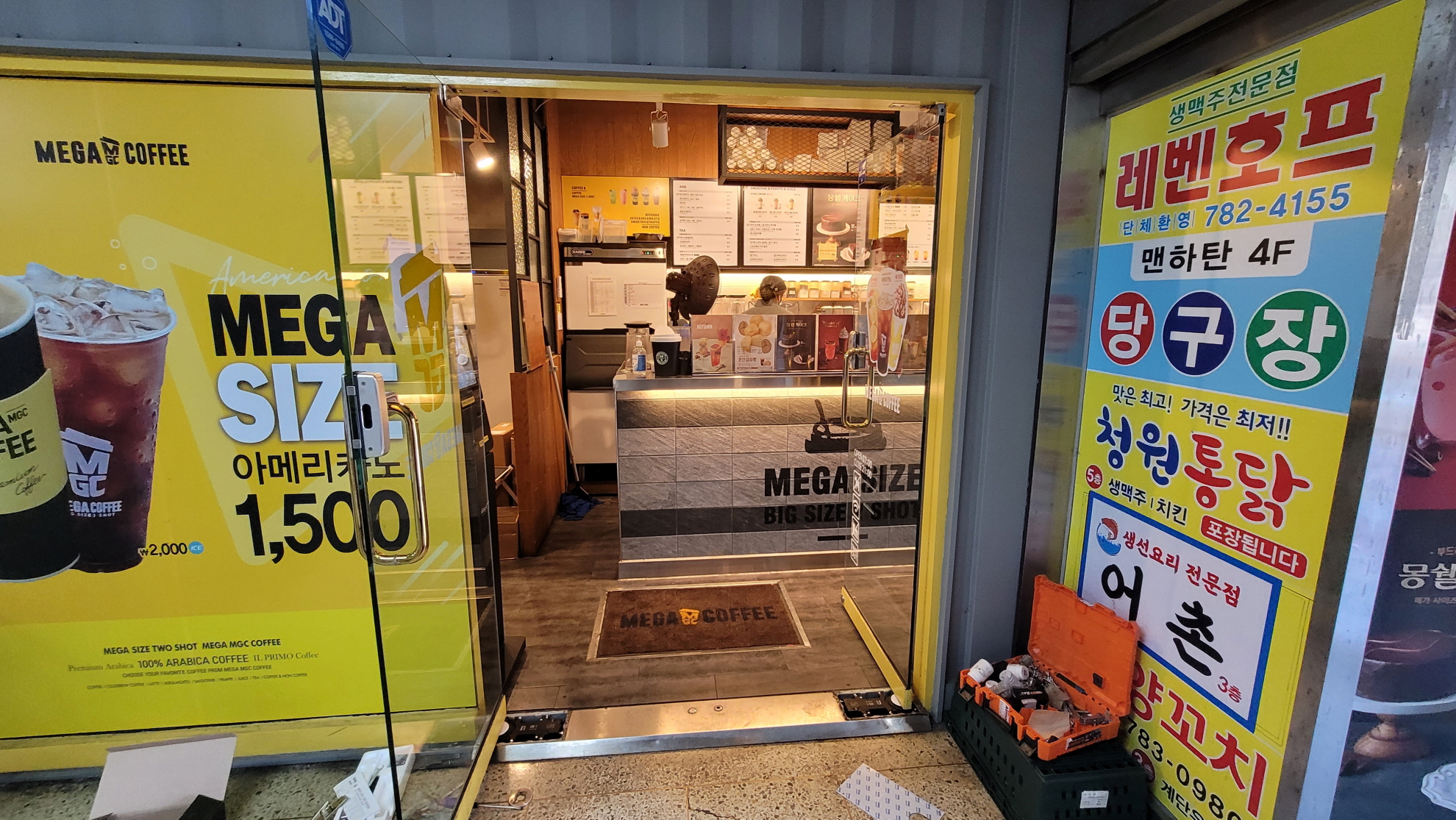 여의도 종합상가 메가커피. 강화도어 힌지를 교체해드렸습니다.