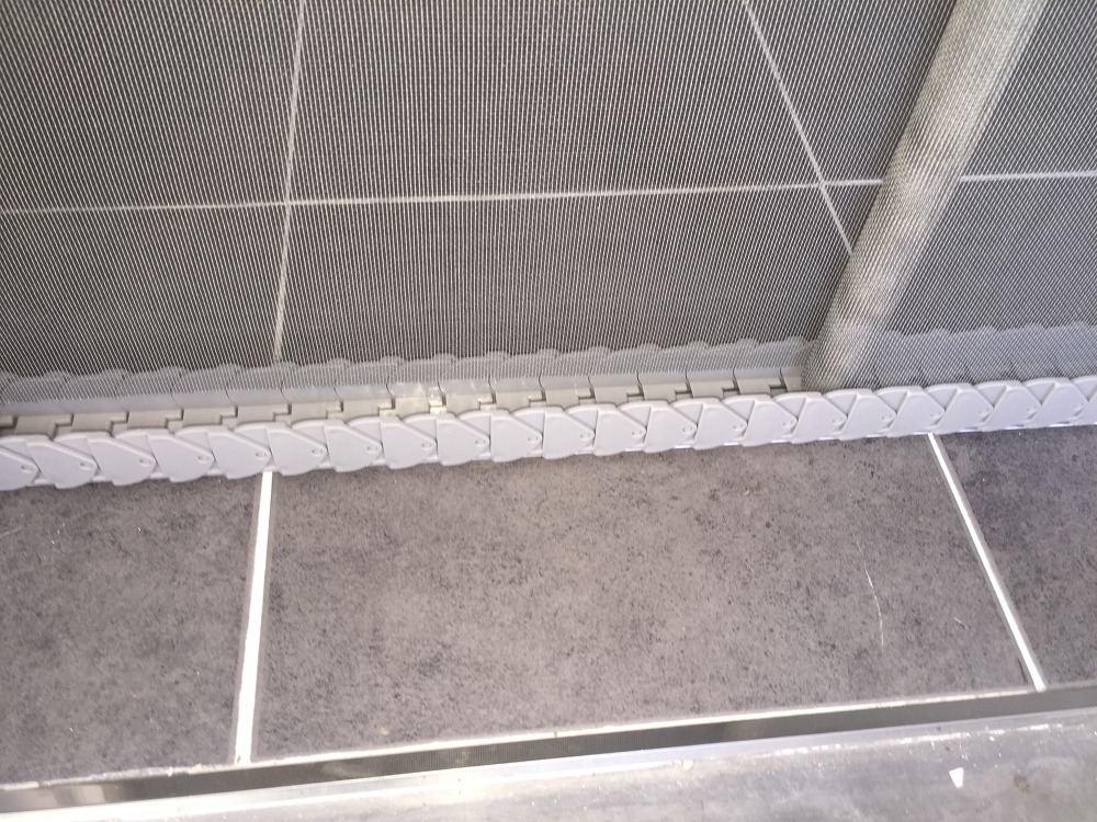이번에 시공한 무턱이방충망은 약 8mm 정도의 낯은 높이로, 일방 롤방충망보다 훨씬 출입이 편리합니다.