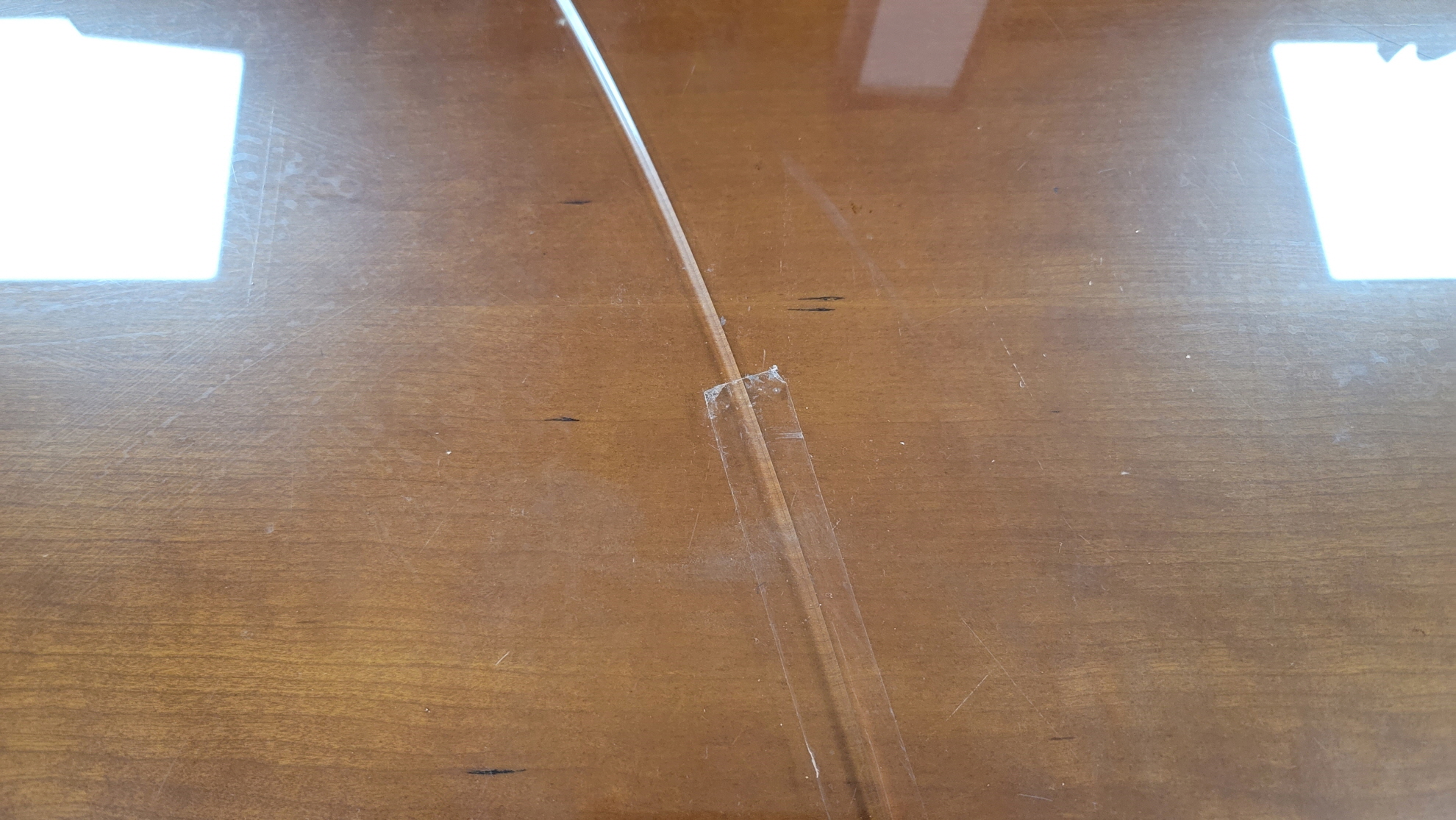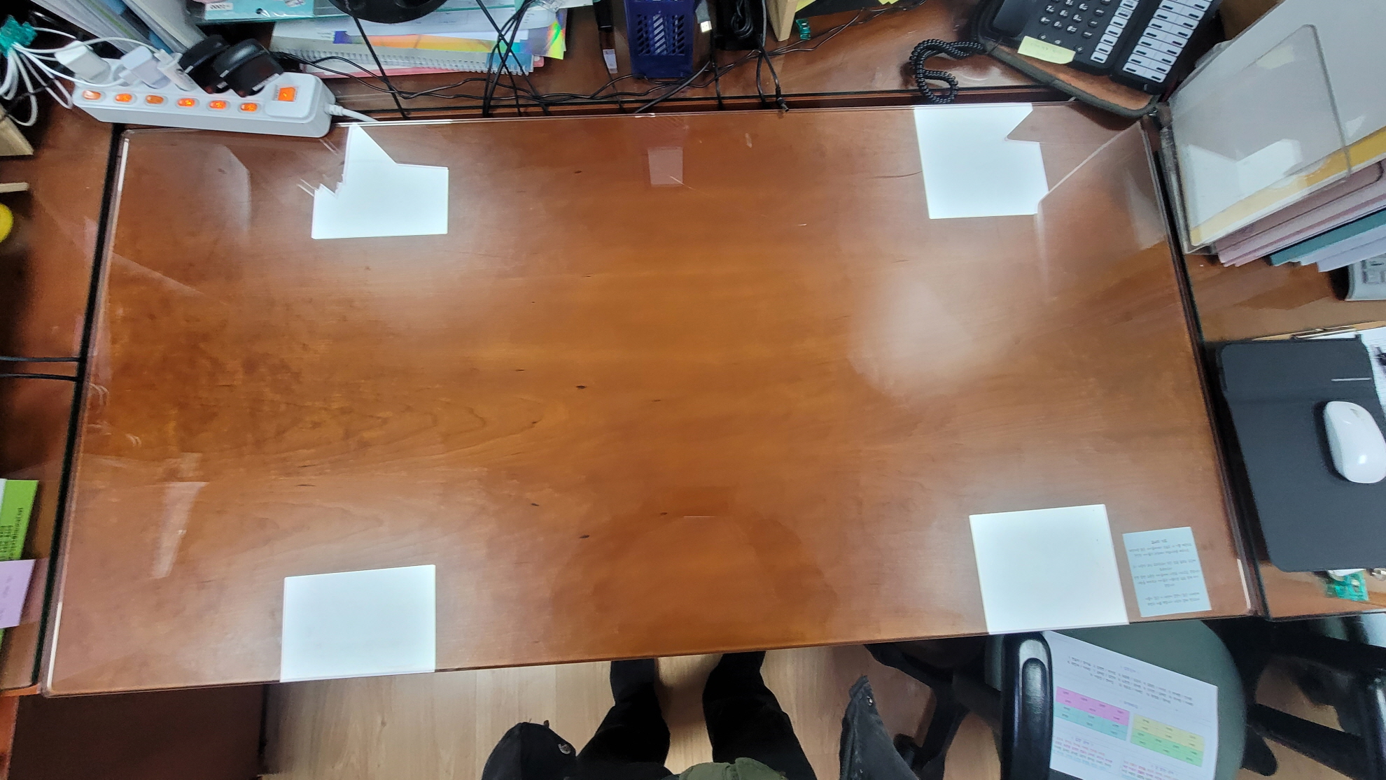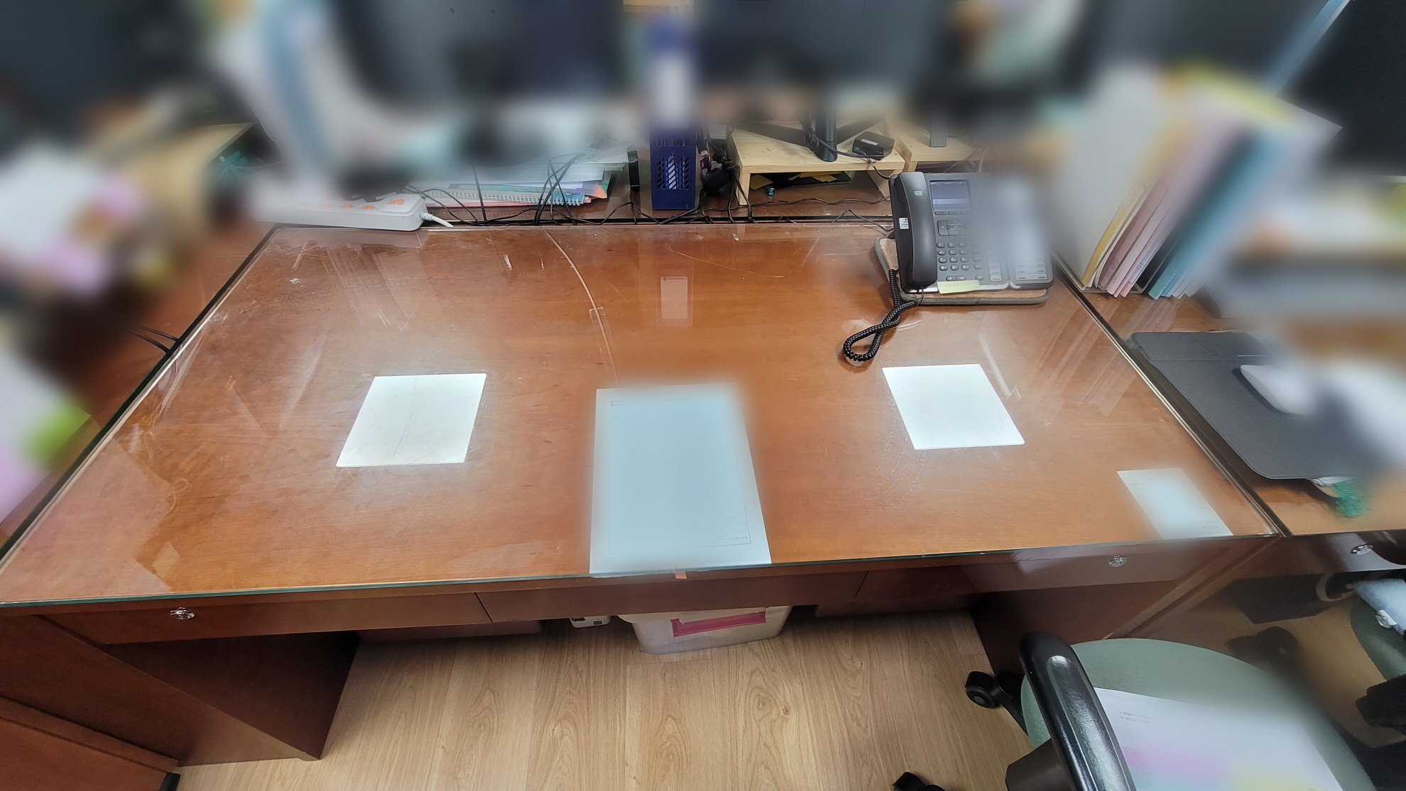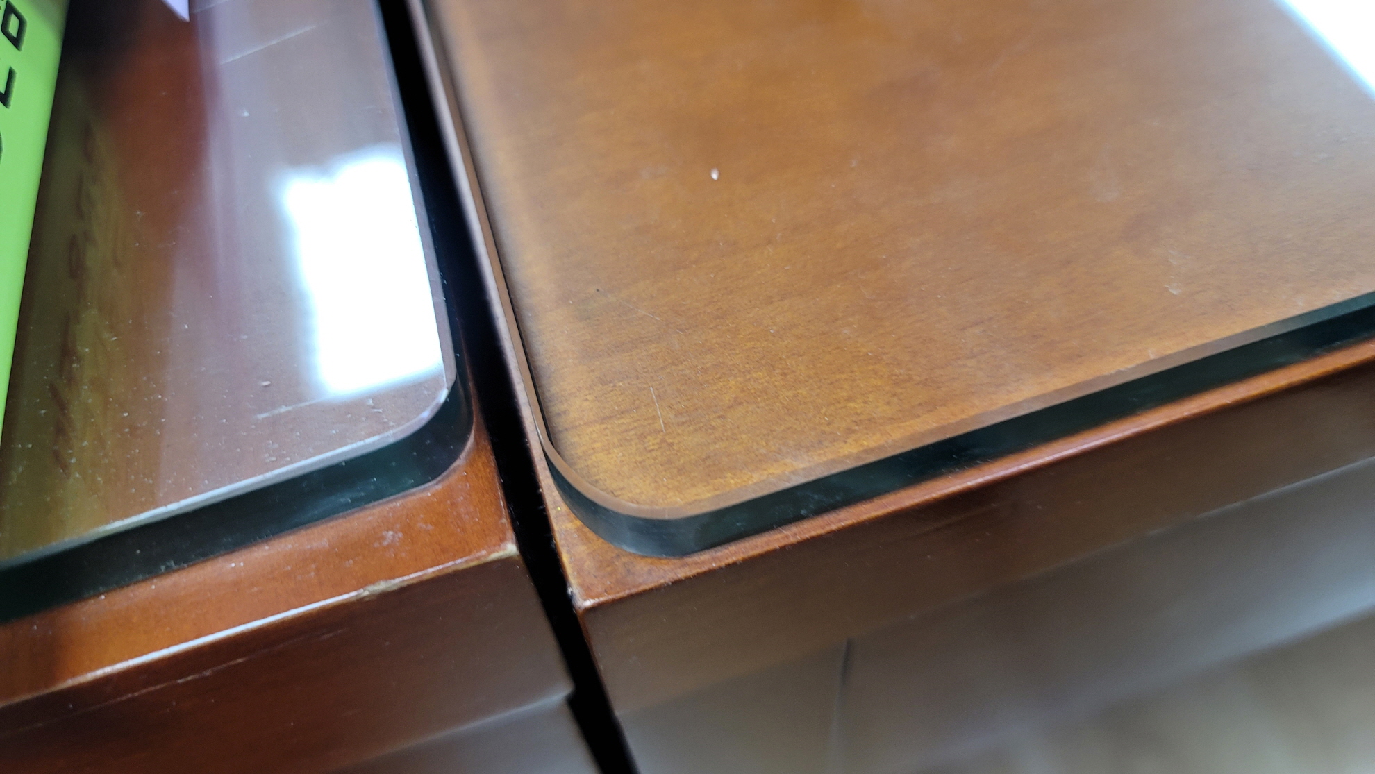좌측이 기존 책상유리, 우측이 새로 교체한 유리입니다.