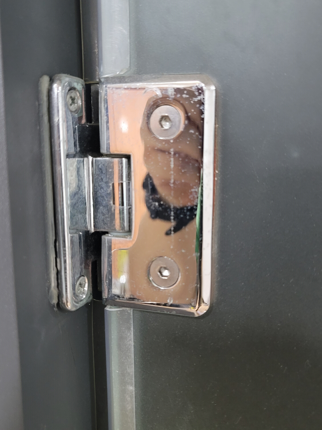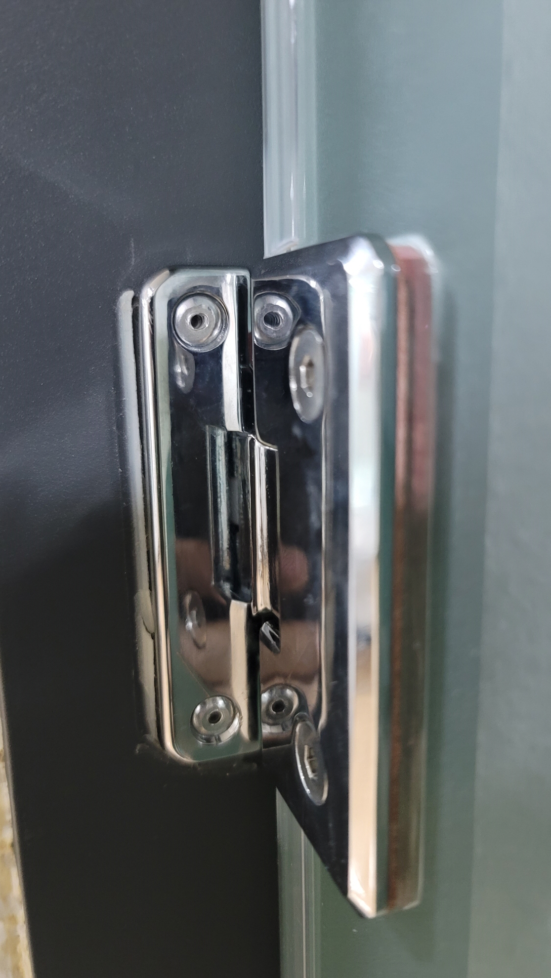 유리가 파손되면서 경첩도 망가졌는지, 경첩도 없는 상태라, 경첩도 설치가 필요합니다.