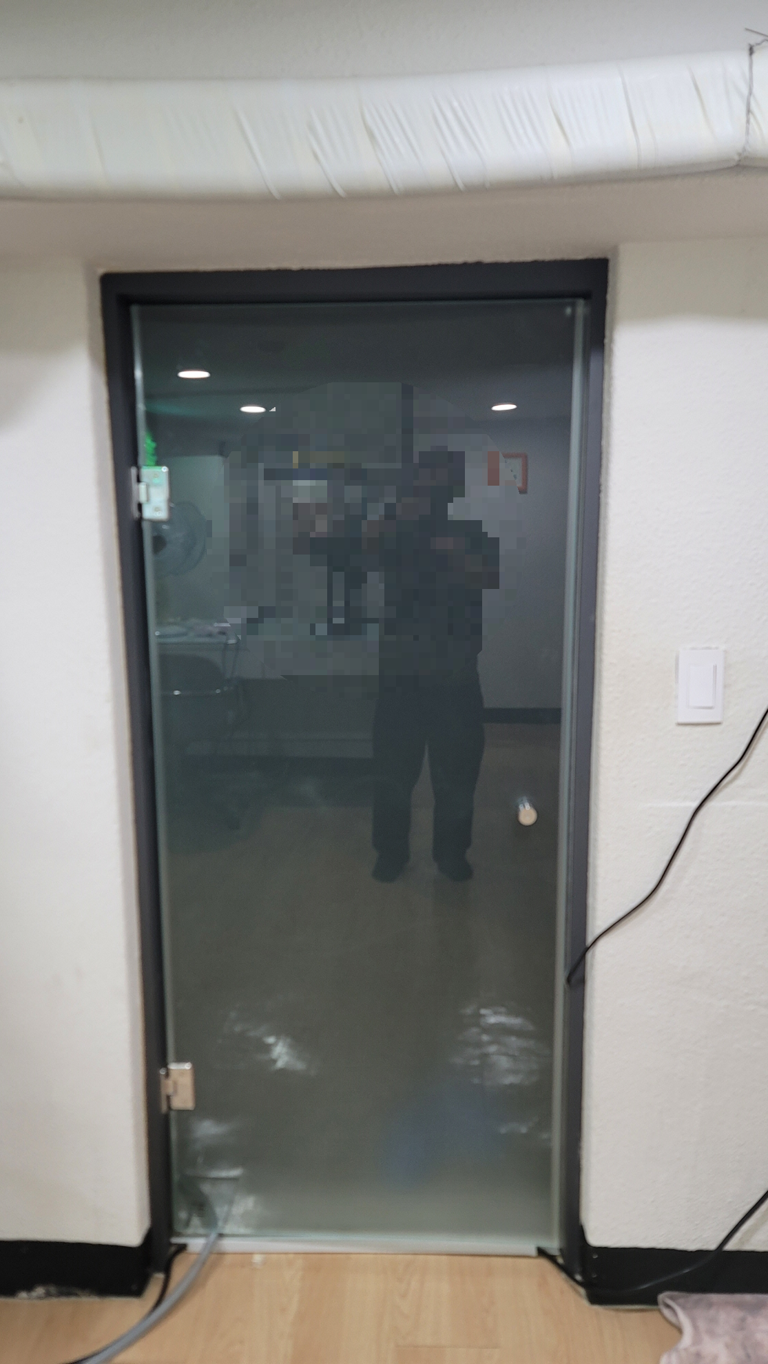 샤워부스도어, 샤워부스문짝교체, 강화유리문교체시공을 완료했습니다.