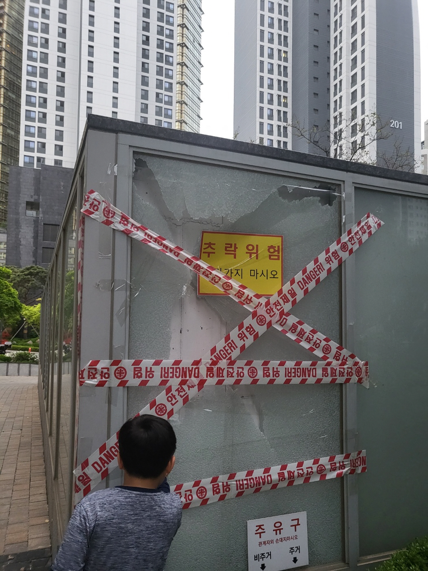 우선 파손된 유리를 철거하고