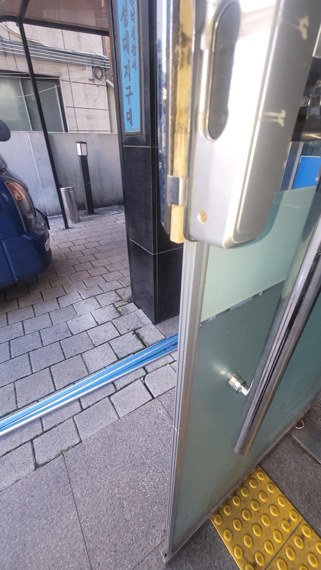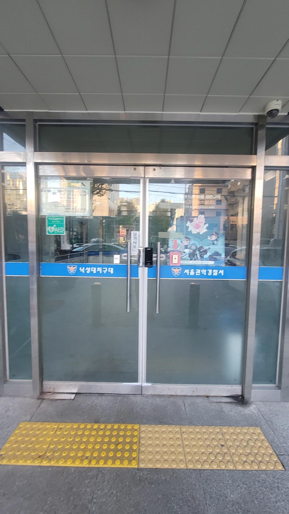 서울 관악구. 낙성대지구대 강화도어 손보호대 안전고무 교체를 해드렸습니다.