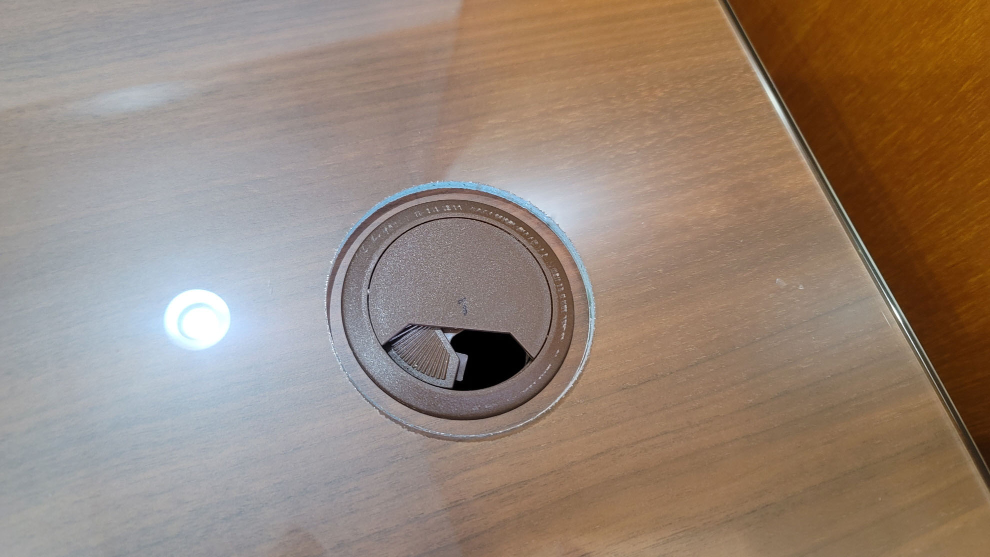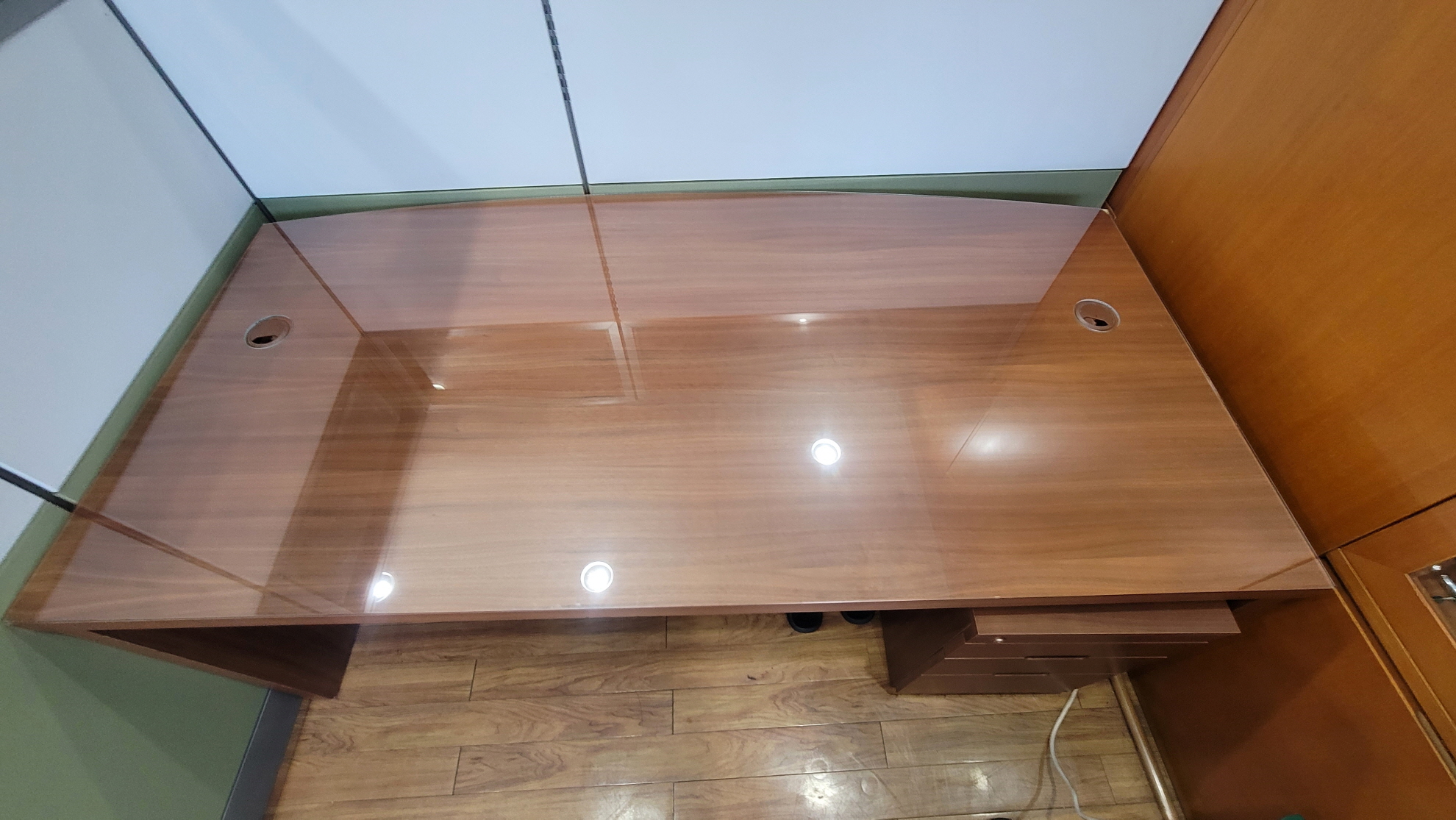 구멍은 홀캡보다 조금 여유있게 뚫어서 유리가 책상상판과 밀착되도록 하였습니다.