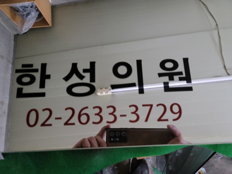 본 건물에 위치한 한성의원의 상호와 전화번호가 들어간 거울입니다.