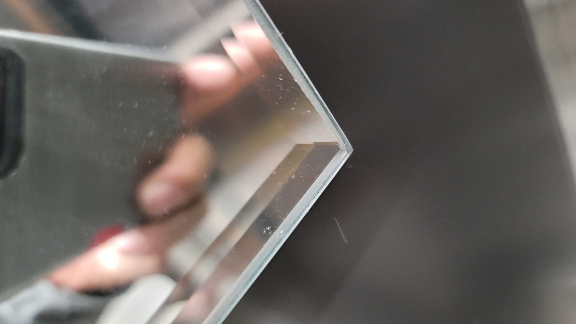 도리면 가공은 아래 사진처럼 유리나 거울의 끝단을 사선으로 가공하는 것을 말합니다.
