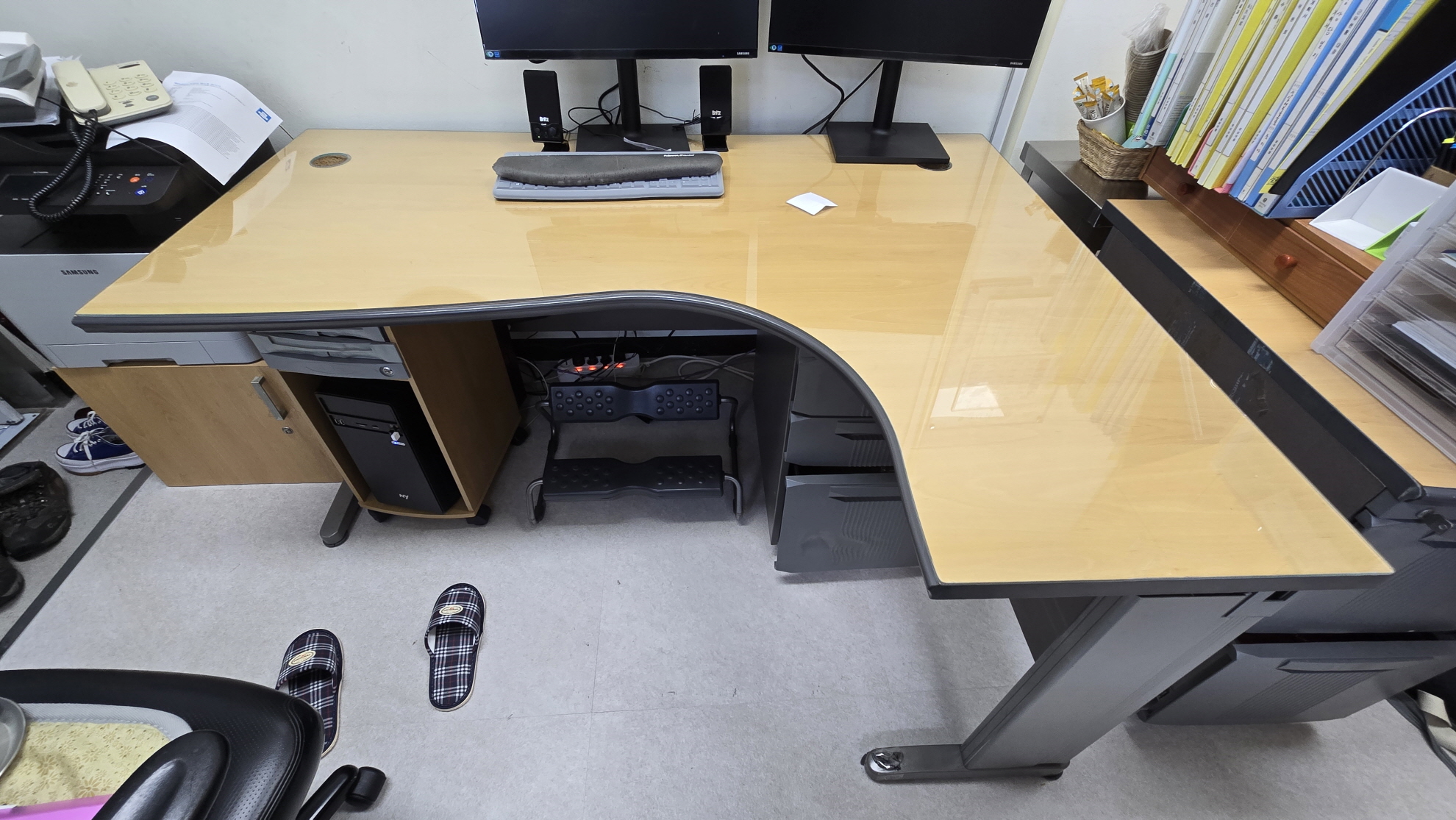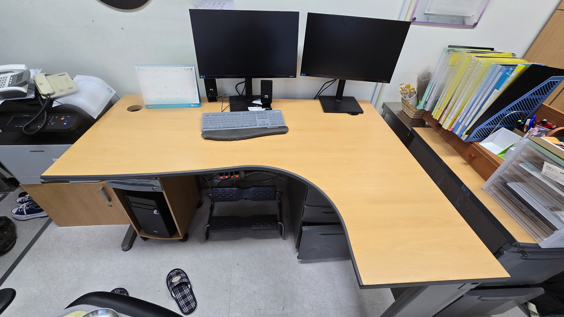 현장에 방문해보니, L자 퍼즐책상이라고 하는 책상입니다.