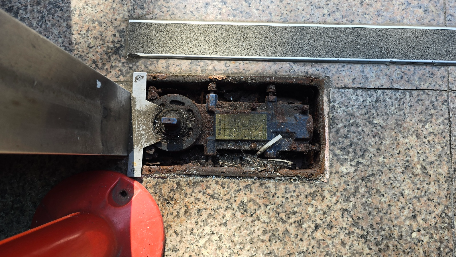 부식된 케이스를 제거하고 안에 시멘트를 채우고 그 위에 새로운 힌지케이스를 묻게 됩니다.