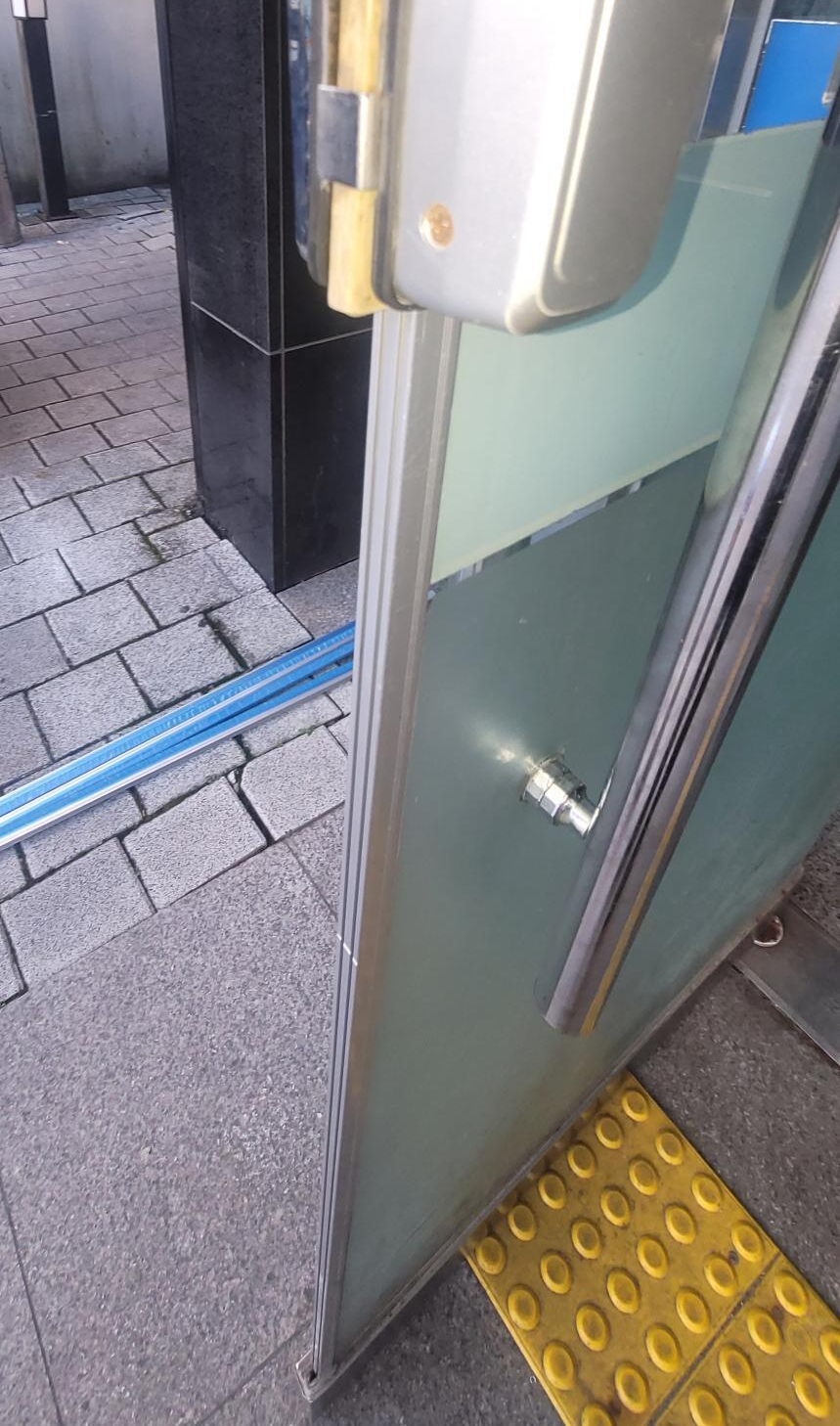 유압이 다 새어 나와서 문이 힘없이 팔랑거리며 열리며 빠르게 움직여서 사람이 다칠 수 있는 상황입니다.