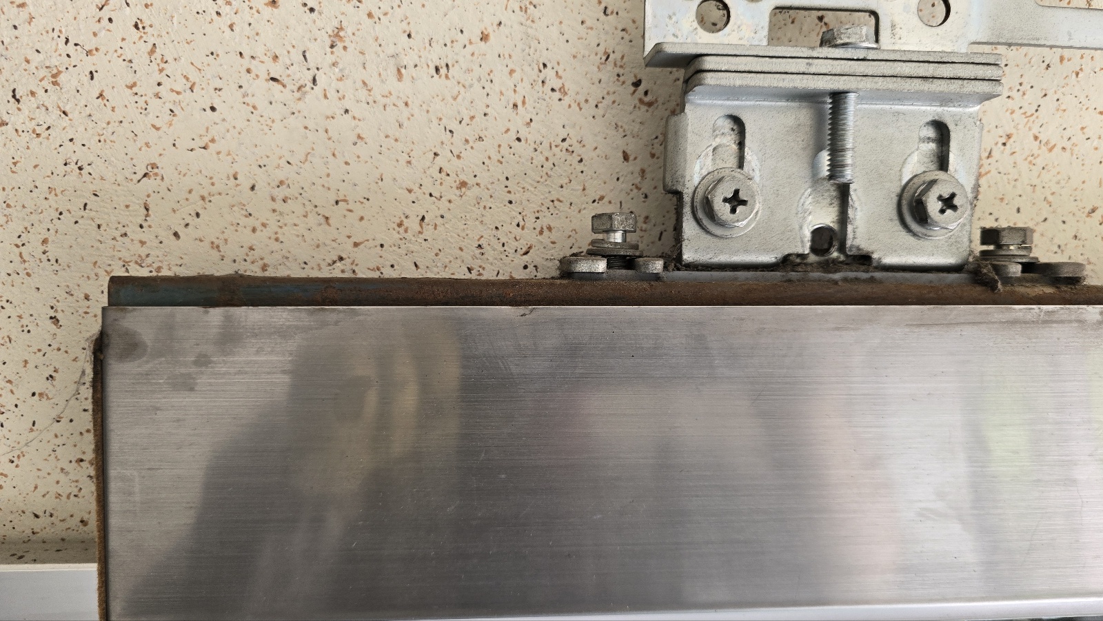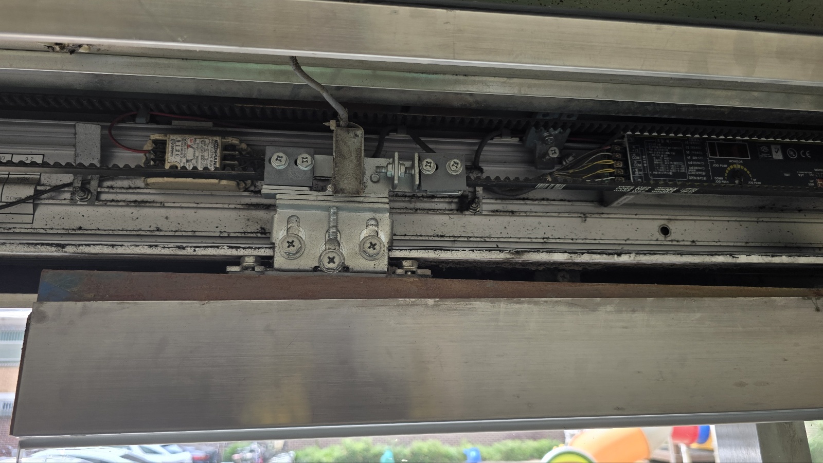 방문해서 살펴보니, 아래 사진처럼 상부 H바가 분리 되어서, 문이 쳐지게 되어 바닥에 닿아 움직이지 않는 상황이었습니다.