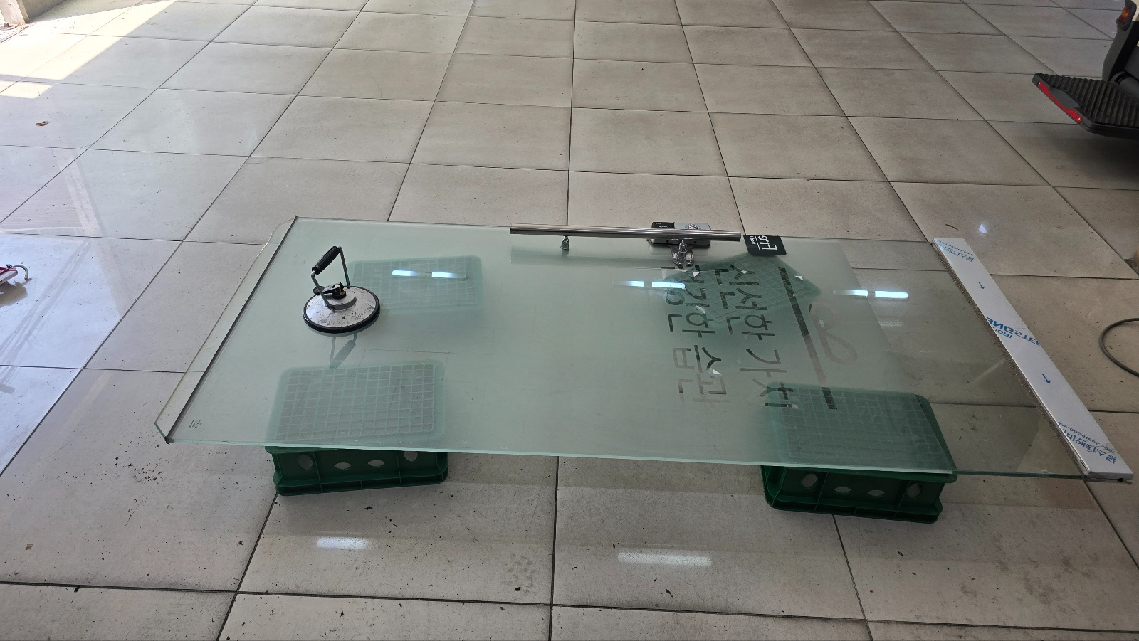 강화도어와 H바 프레임이 부착될 부분에 실리콘등 이물질을 깨끗하게 제거합니다.