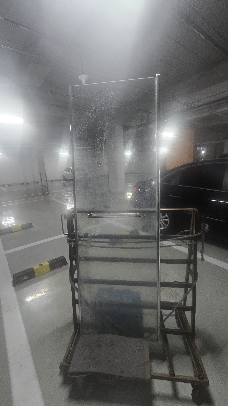 교체전 파손된 샤워부스도어의 사진입니다.