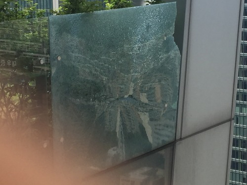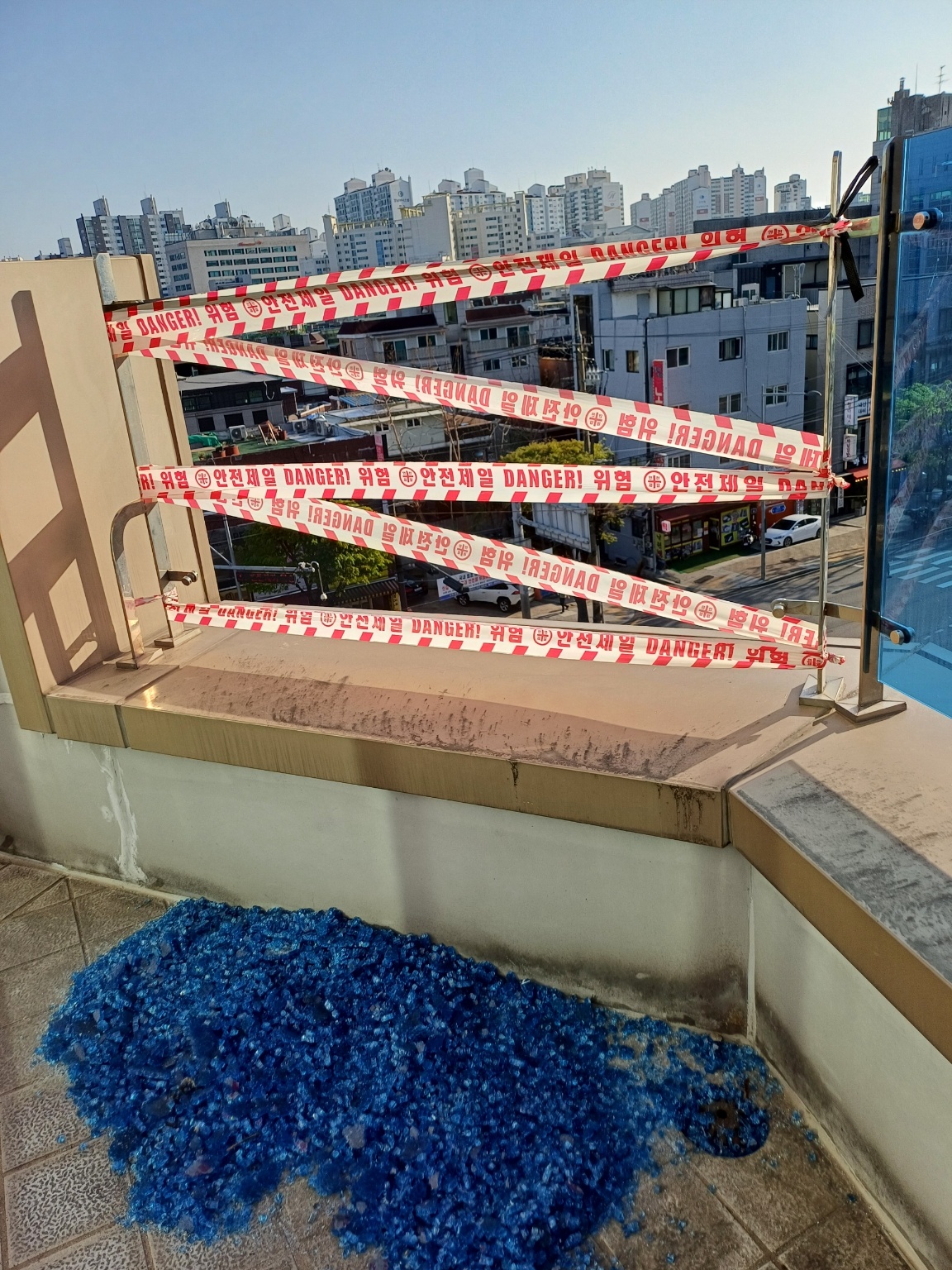 강화유리가 파손이 되면서 유리조각이 건물 아래, 인도와 차도에 덜어져서 위험했던 상황이었다고 합니다.
