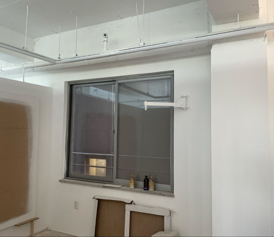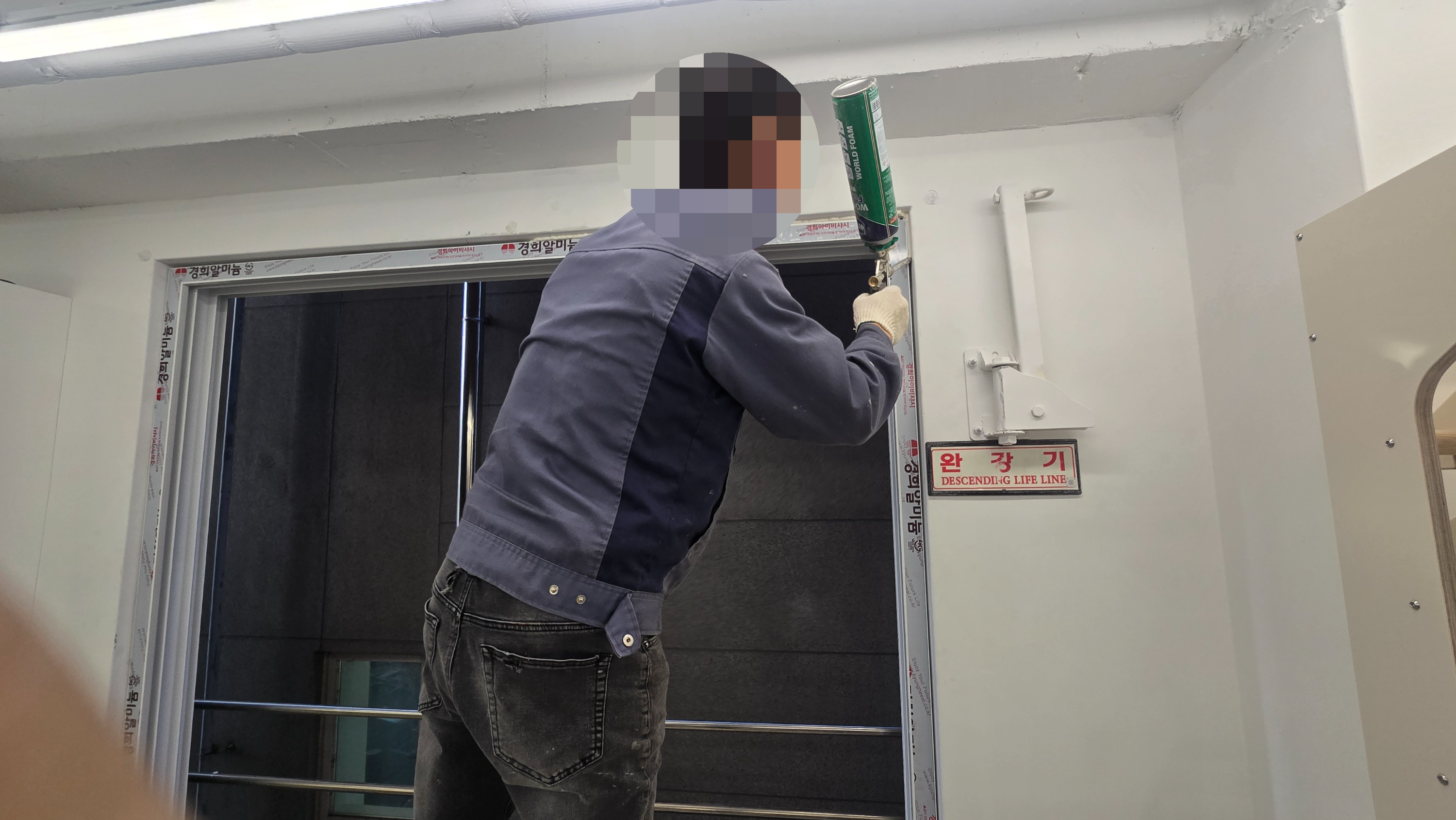 기존창호를 철거하고. 방화창을 설치하기 위한 준비 중입니다.
