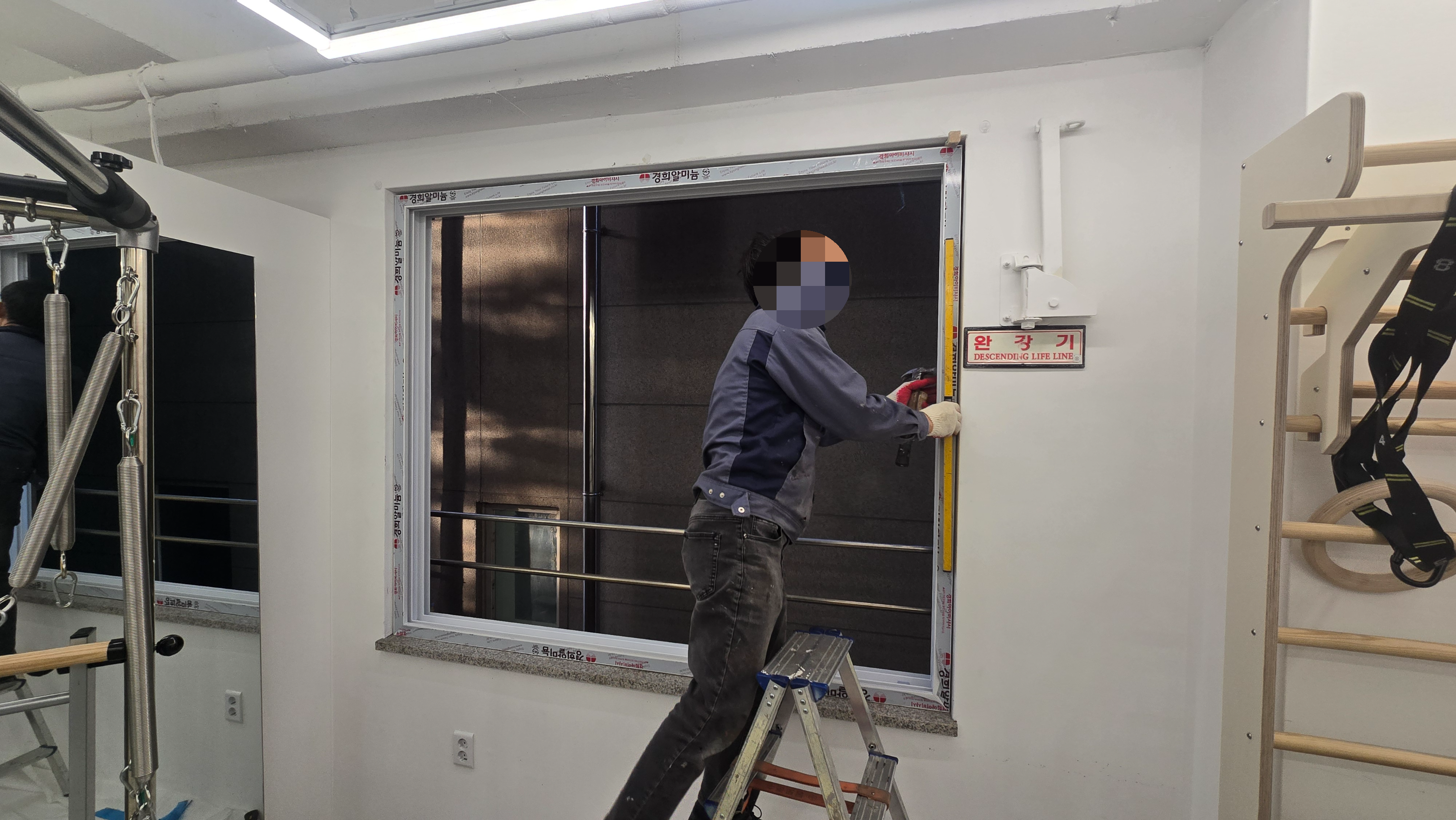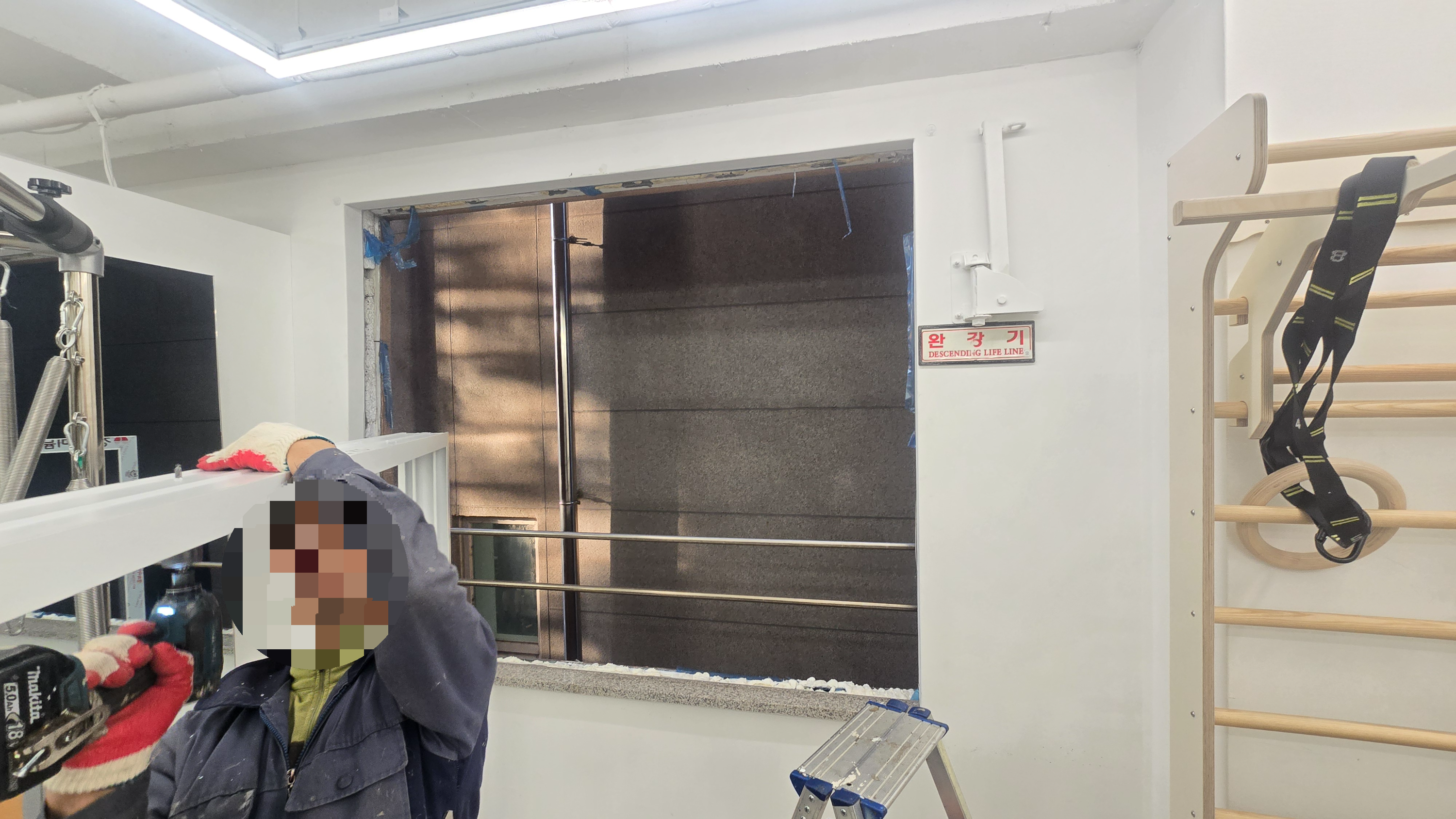 기존창호를 철거하고. 방화창을 설치하기 위한 준비 중입니다.