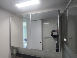 욕실수납장 (3) 썸네일형 리스트형 상도동 상도2차 두산위브트레지움 아파트. 욕실슬라이드장 도어 거울 교체작업 전화문의 02-780-0275 클릭하시면 연결됩니다.동작구 상도동에 위치한 상도2차 두산위브트레지움 아파트.욕실슬라이드 수납장 도어 거울을 교체해드렸습니다.거실 욕실, 안방 욕실 2 곳의 슬라이드 수납장 도어 거울 4장을 모두 교체해드렸습니다.인테리어를 새로하시면서, 욕실장 교체를 고민하시다가거울을 제외한 상태는 양호하기도 하고, 주문제작 사이즈라 견적금액이 적지않고시간적인 문제도 있고 해서, 거울만 교체를 의뢰해 주셨습니다. 교체 전 모습입니다.비교적 상태가 양호하지만, 군데 군데 부식이 진행되어 변색이 된 부분이 있었습니다.도어를 분리해서 공장으로 이동합니다. 분리해온 도어 문짝에서 거울을 제거하면 다음과 같은 모습입니다. 새로운 거울을 정확히 재단 가공하여 프레임에 부학하고 실리콘작업을 해드립니다... 당산 현대5차아파트 욕실 프레임거울 누드거울 교체 작업 전화문의 02-780-0275 클릭하시면 연결됩니다.당산 현대5차아파트. 욕실거울이 파손되었다고 문의를 주셔서 방문드렸습니다.교체전 사진입니다. 파손된 부위를 근접촬영한 사진입니다.본 현장의 거울은, 누드 프레임 거울이라고 하는데요전면에서 보기에는 프레임이 없는 것처럼 얇은 프레임이 있고측면에서 보면 10-15mm 정도의 두께의 프레임이 있는 거울제품입니다.예전에는 거울고리를 사용해서 거울만 부착하는 방법을 많이 사용했지만요즘은 이런 프레임거울이나, 거울을 문짝으로 사용하는 슬라이드장을 많이 설치하십니다.교체방법은 2가지 방법이 있습니다.프레임은 재사용하고, 거울만 교체하는 방법과 프레임까지 새재품으로 교체를 하는 방법프레임까지 동째로 새제품으로 교체를 원하셔서 교체를 진행했습니다. 파손된 기존 거울.. 욕실장 거울교체, 욕실 수납장 도어 거울교체. 서초포레스타3단지 아파트. 유리전문점 여의도 유리가게 대일유리 02-780-0275 서초포레스타3단지 아파트, 304동. 욕실장 거울교체를 문의하셨습니다. 현장에 가서 상태를 확인하고, 상담 후 교체를 진행하기로 하였습니다. 교체 전 모습입니다. 슬라이딩 도어 2개로 구성된 욕실장이었는데, 한 곳은 거울이 깨진 상태였고, 한 쪽은 부식이 진행된 상황이었습니다. 전체 사진입니다. 깨진곳이 잘 보이지 않으시죠. 깨진 곳을 가까이 촬영한 모습입니다. 한 곳은 깨지지는 않았지만 사진처럼 부식이 진행되어있었습니다. 교체를 진행하기로 하고, 거울을 분리해서 수거를 해왔습니다. 보오미 거울로 규격에 맞게 제작을 하고, 거울 뒤편에 엠보필름을 부착합니다. 필름을 붙이는 이유는, 거울이 파손되었을때 거울이 쏟아지지 않도록 해서 부상의 위험을 줄이는데 있습니다. 필름까지 부착한 거울을 도어프레임에 조립을.. 이전 1 다음